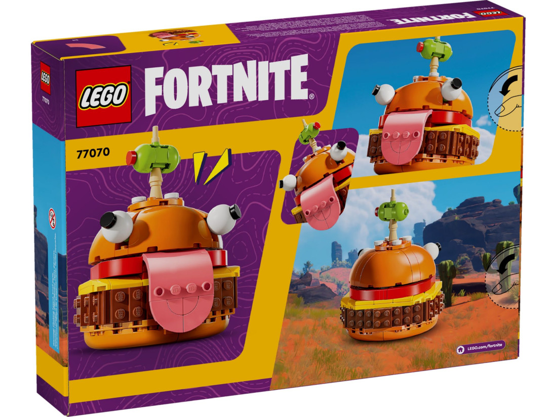 Після складання Durrr Burger стає чудовим колекційним предметом, ідеальним для демонстрації у спальні чи ігровій кімнаті. Це відмінний подарунок для шанувальників Fortnite та геймерів різного віку, який стане цінним доповненням до будь-якої колекції LEGO. Цей набір також можна поєднувати з іншими конструкціями LEGO® Fortnite для створення ще більш захоплюючого ігрового декору.