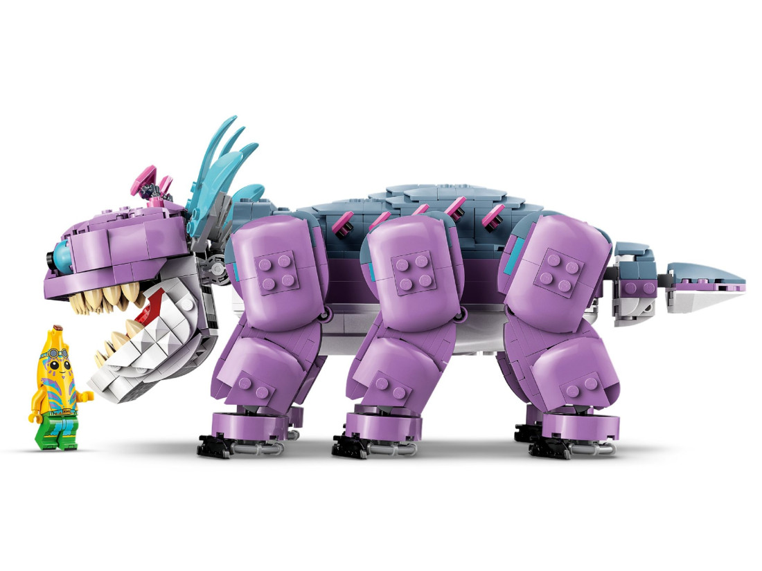 Ігрові сценарії розширює кущ Klomberry з окремими «ягодами», якими можна «годувати» істоту й намагатися її приручити. У комплект входять мініфігурки Island Adventure Peely та Oro; їх можна розмістити на спині моделі для подорожей і битв. Передбачено й цифровий бонус: відскануйте QR-код в інструкції, щоб отримати костюм Peely Island Adventure у грі LEGO Fortnite і продовжити пригоди у віртуальному світі.
