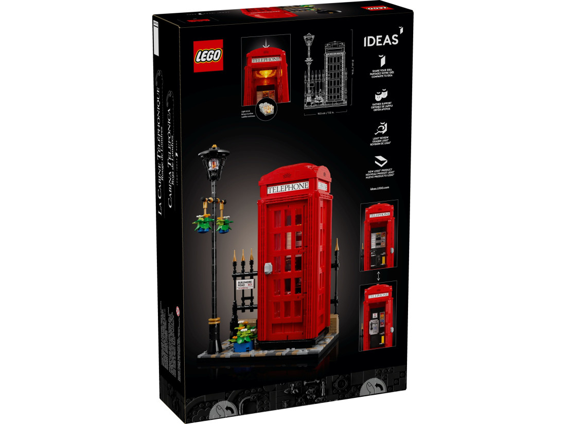 Телефонна будка «Червоний Лондон» (21347) — частина серії LEGO Ideas, де представлені проекти, створені фанатами, за які проголосували ентузіасти LEGO та вироблені LEGO Group. Цей набір, що складається з 1460 деталей, дає захоплюючий досвід складання та має висоту понад 31 см (12 дюймів), ширину 19 см (7,5 дюйми) та глибину 15 см (6 дюймів).