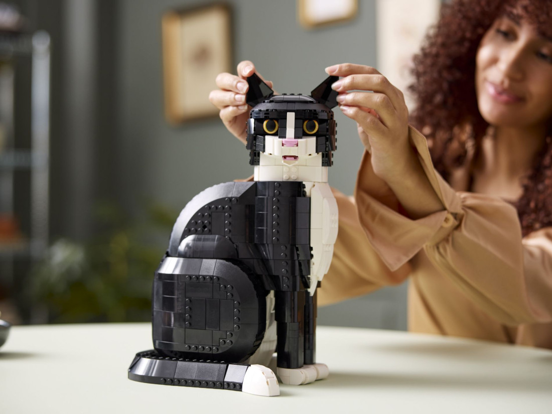 Незалежно від того, чи є ви власником кішки чи просто любите тварин, природу чи дизайн, ця модель Чорно-білого Кота стане грайливим та стильним доповненням будь-якого будинку. Висота моделі складає більше 32 см, і набір з 1,710 деталей стане не лише захоплюючим проектом, а й гарним елементом декору.