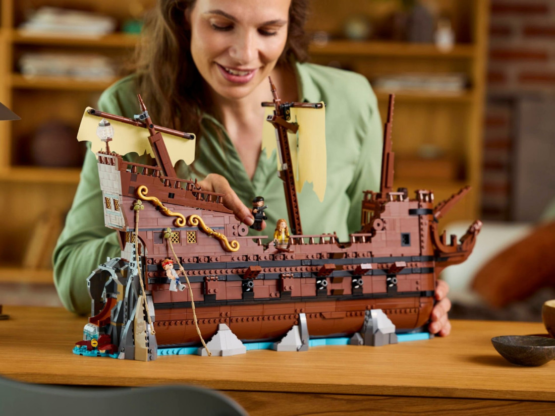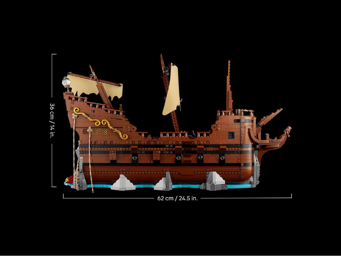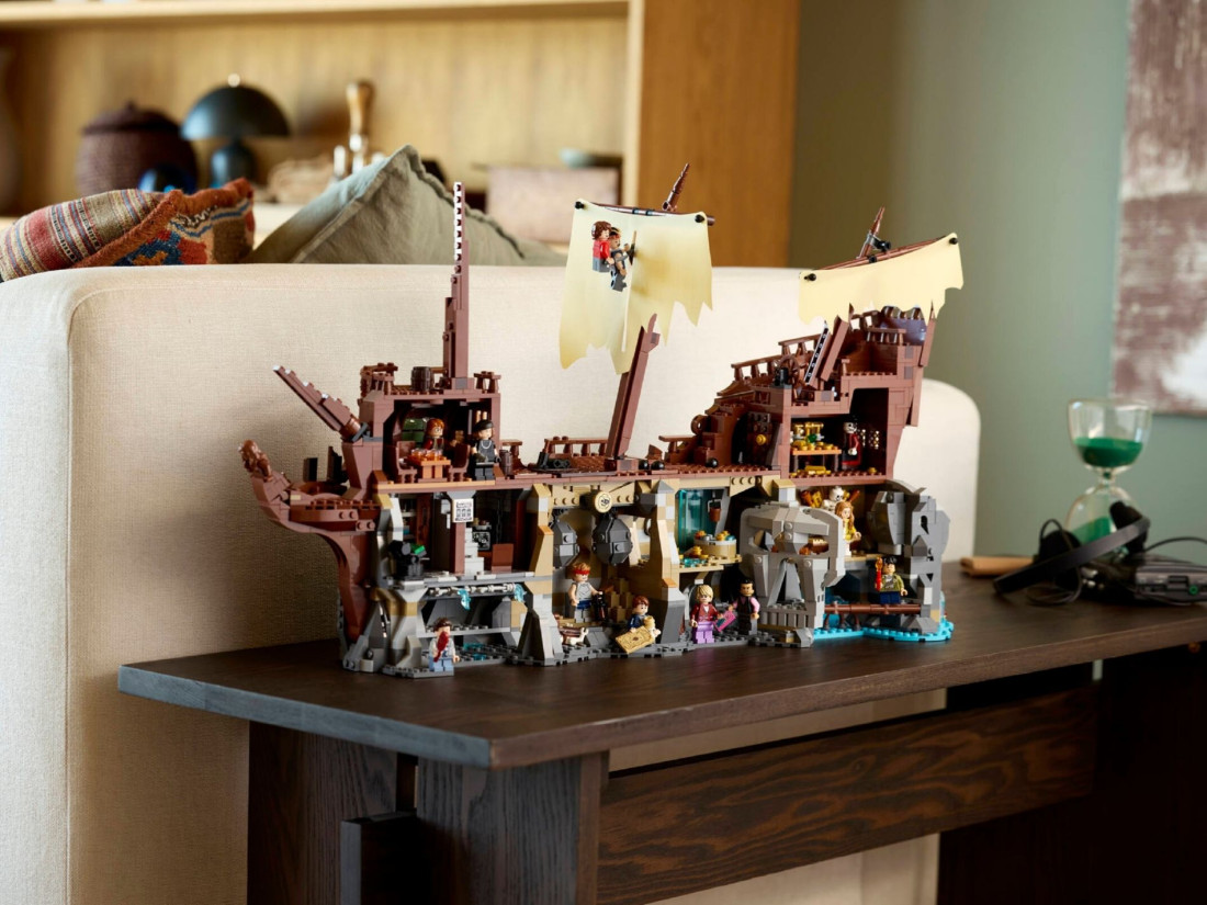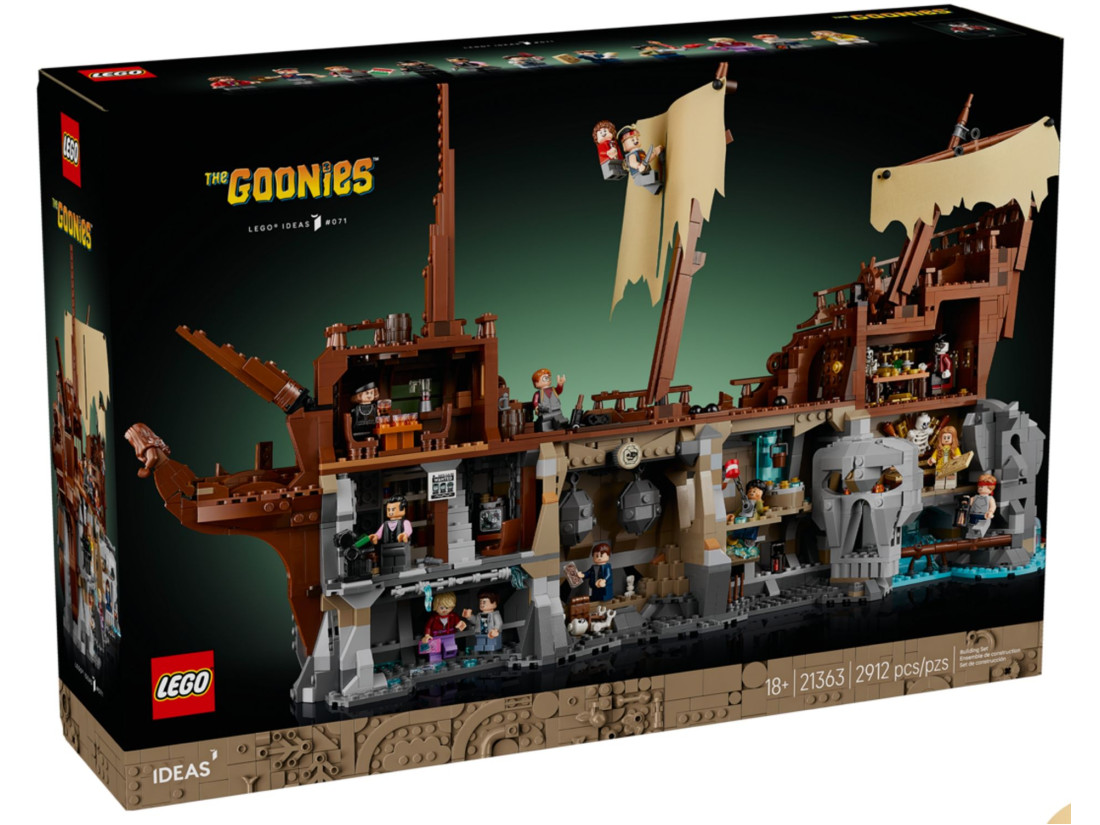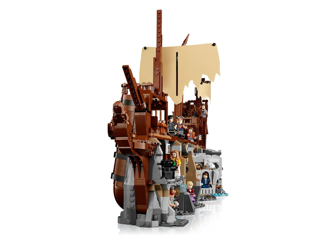 Колекційний набір LEGO IDEAS The Goonies (21363) переносить у атмосферу пригод 80‑х і представлений як деталізована діорама. В основі — піратський корабель Inferno з упізнаваними епізодами: сховище Фрателлі, підземні печери та скарбниця Віллі. Тильний бік показує руїни судна, тож модель зручно розглядати з усіх ракурсів і використовувати як інтер’єрний об’єкт.