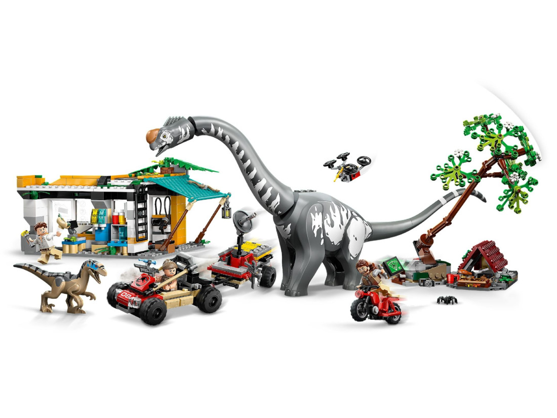 Досліджуйте світ доісторичних створінь з набором LEGO JURASSIC WORLD «Слідами раптора і титанозавра» (76973) для дітей від 7 років. У центрі гри — дві литі фігури: титанозавр з рухомими шиєю, головою та хвостом і спритний велоцираптор із пащею, що відкривається. Мініфігурки Зори Беннетт, Мартина Кребса і доктора Генрі Луміса розвивають сюжет спостережень, порятунку та польових досліджень.