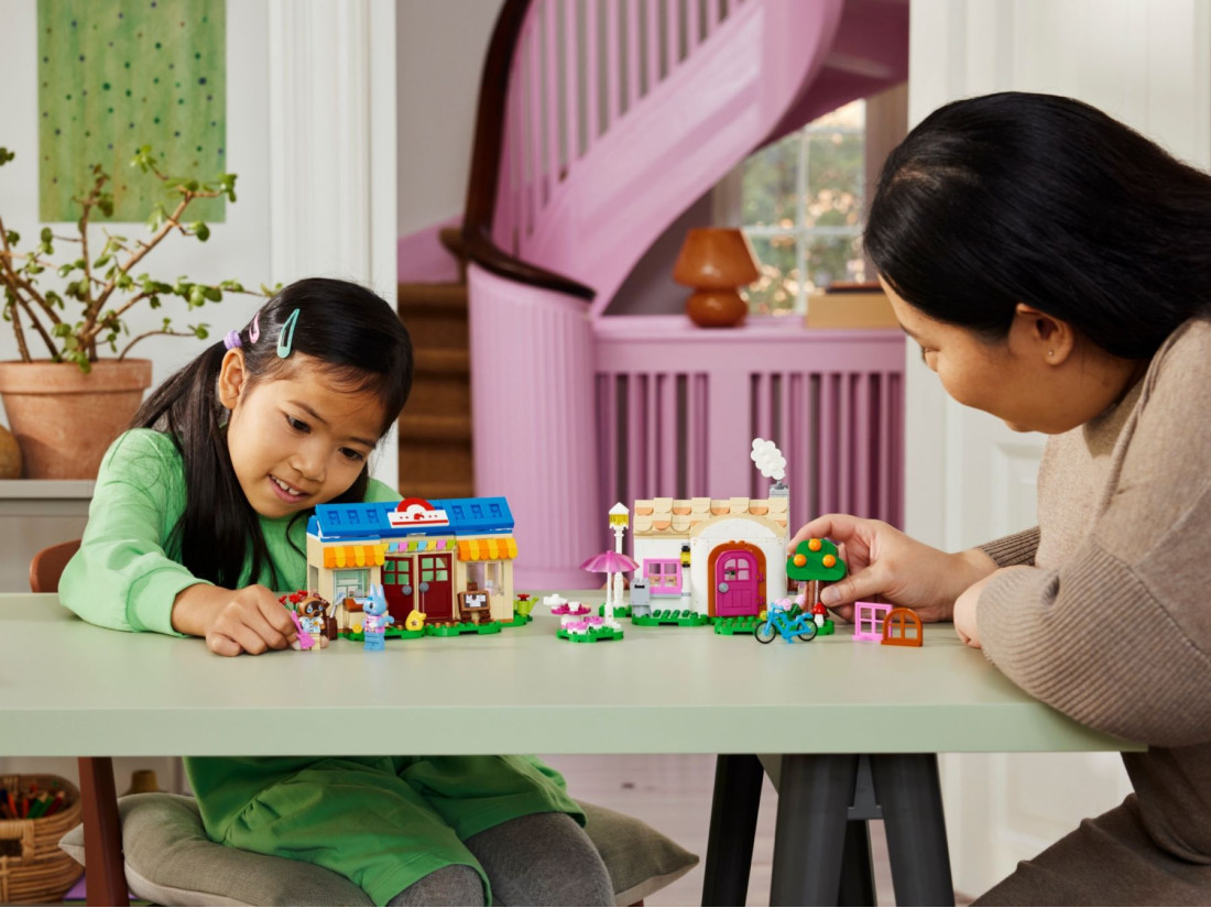 До набору входять докладні копії «Ущелини Нука» та «Дома Розі», доповнені відомими елементами, такими як картка з рецептами, зробленими своїми руками, насіння квітів, наживка для риби та культові дзвіночки. Юні будівельники можуть розіграти покупки інструментів у Nook's Cranny або насолодитися чаєм у домі Розі, розвиваючи творчі здібності та навички розповідання історій.