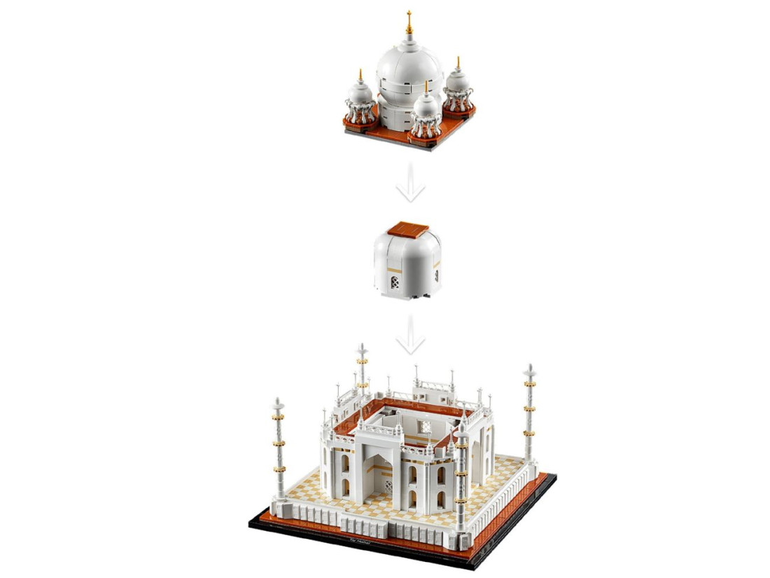 У 2021 році лінійка LEGO Architecture поповнилася набором LEGO Architecture Тадж-Махал (21056), розрахованим на досвідчених будівельників 18+. З 2022 елементів можна крок за кроком відтворити мініатюрну інтерпретацію знаменитого індійського мавзолею, приділяючи увагу симетрії, пропорціям і характерним силуетам. Процес збирання неквапливий і медитативний, а підсумкова модель передає спокійну палітру оригіналу та його ретельно вивірену композицію.