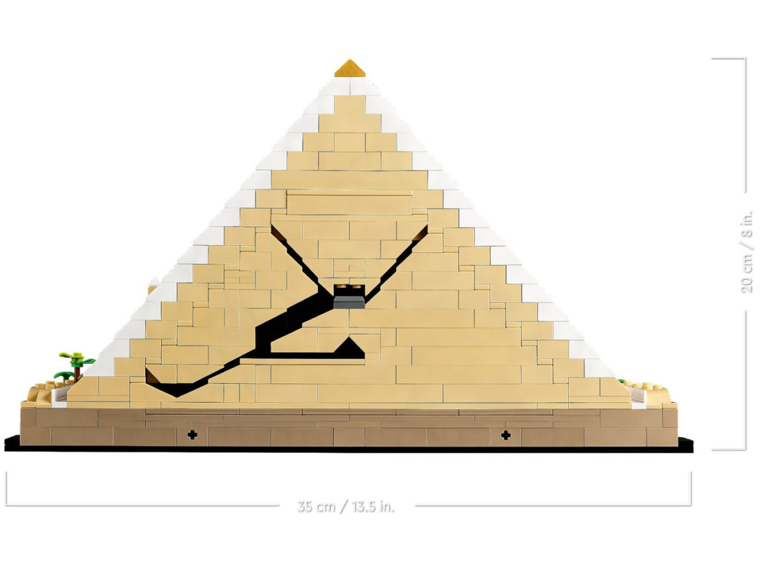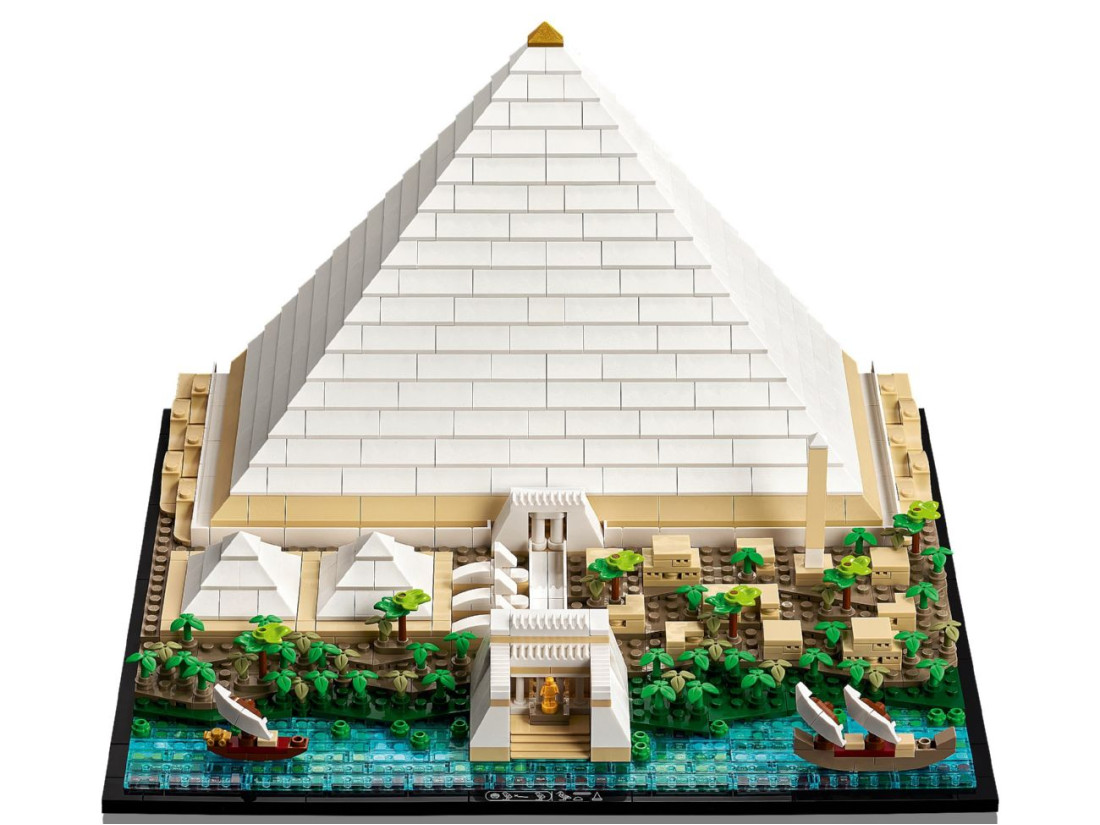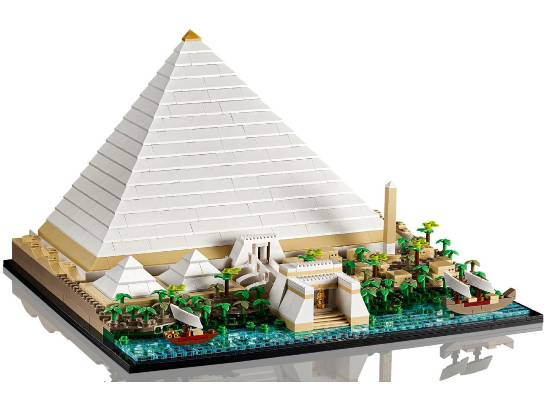 Набір LEGO ARCHITECTURE «Піраміда Хеопса» (21058) запрошує поглянути на пам’ятник давнього світу таким, яким він міг бути в античності. Діорама в мікромасштабі з берегом Нілу та навколишніми спорудами створює цілісну сцену для ефектної демонстрації.