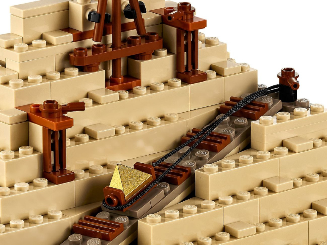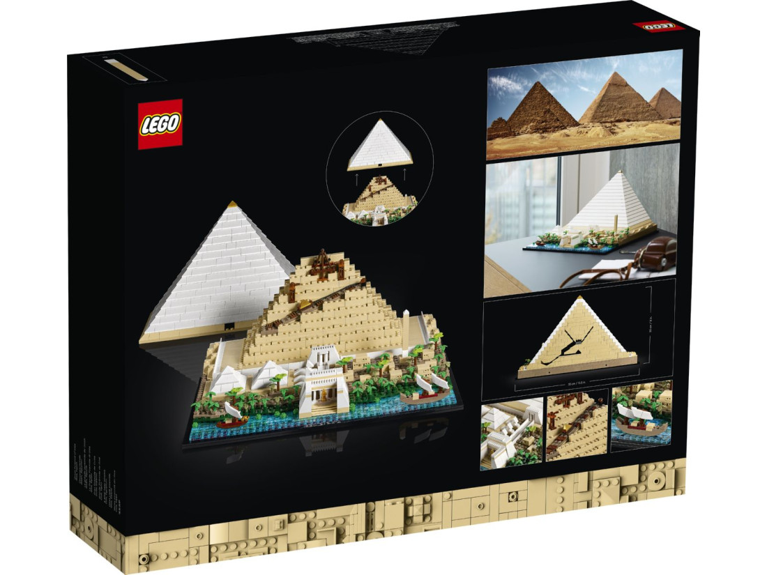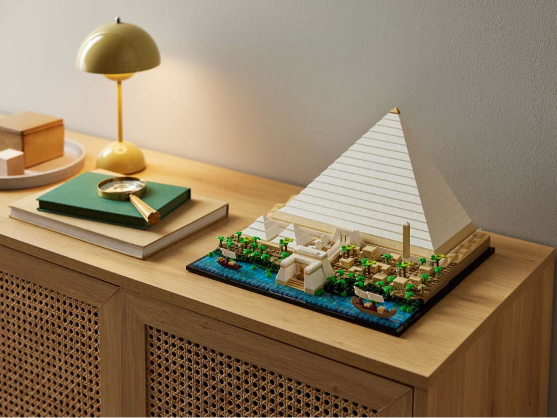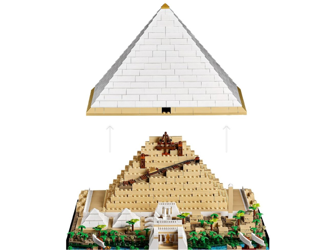 Набір LEGO ARCHITECTURE «Піраміда Хеопса» (21058) запрошує поглянути на пам’ятник давнього світу таким, яким він міг бути в античності. Діорама в мікромасштабі з берегом Нілу та навколишніми спорудами створює цілісну сцену для ефектної демонстрації.