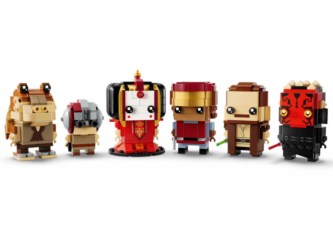 Поверніться в епічну історію за допомогою зібраних із кубиків фігурок Джа-Джа Бінкса, Енакіна Скайуокера, королеви Амідали, капітана Панакі, Квай-Гона Джинна та Дарта Мола LEGO. Кожна фігурка поставляється зі своєю базовою пластиною та оригінальними аксесуарами, такими як молот молодого Енакіна та червоний подвійний світловий меч Дарта Мола.