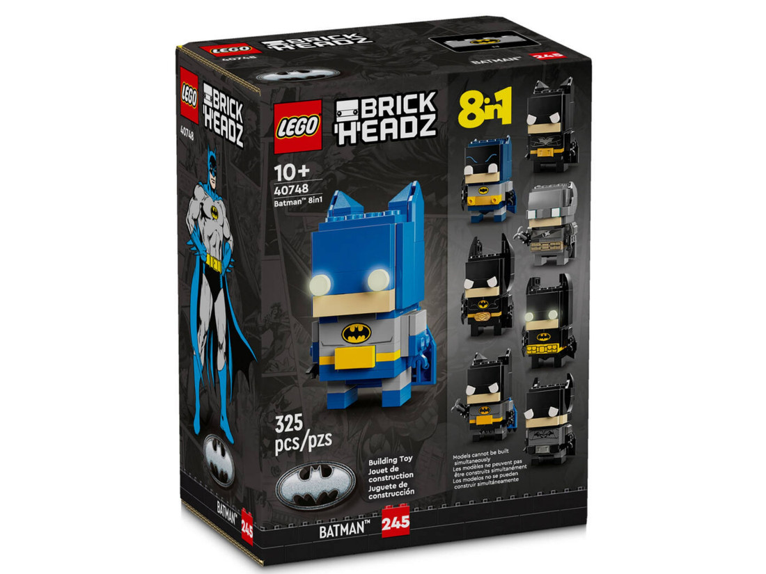 8 в 1 BrickHeadz™ Batman™ — діти можуть зібрати свого BrickHeadz Batman у 8 різних стилях, що запам'ятовуються, що робить його універсальною і веселою ідеєю для подарунка хлопчикам і дівчаткам віком від 10 років і старше.