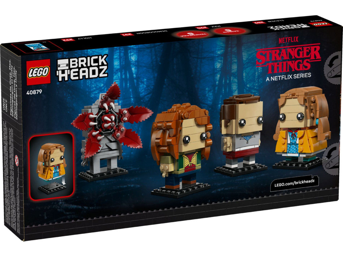 Набір LEGO BRICKHEADZ «Одинадцять, Макс, Демогоргон і Холлі» (40879) — колекційна модель за мотивами Stranger Things для складання та демонстрації. Усередині — чотири персонажі з характерними рисами, виконані у фірмовій кубічній стилізації серії. Деталізація підкреслює індивідуальність героїв: впізнаваний образ Одинадцяти, кучеряве руде волосся Макс, мініатюрна Холлі та зловісний Демогоргон з розкритою пащею й гострими зубами. Набір розрахований на шанувальників від 10 років і старших, які цінують акуратні виставкові моделі.