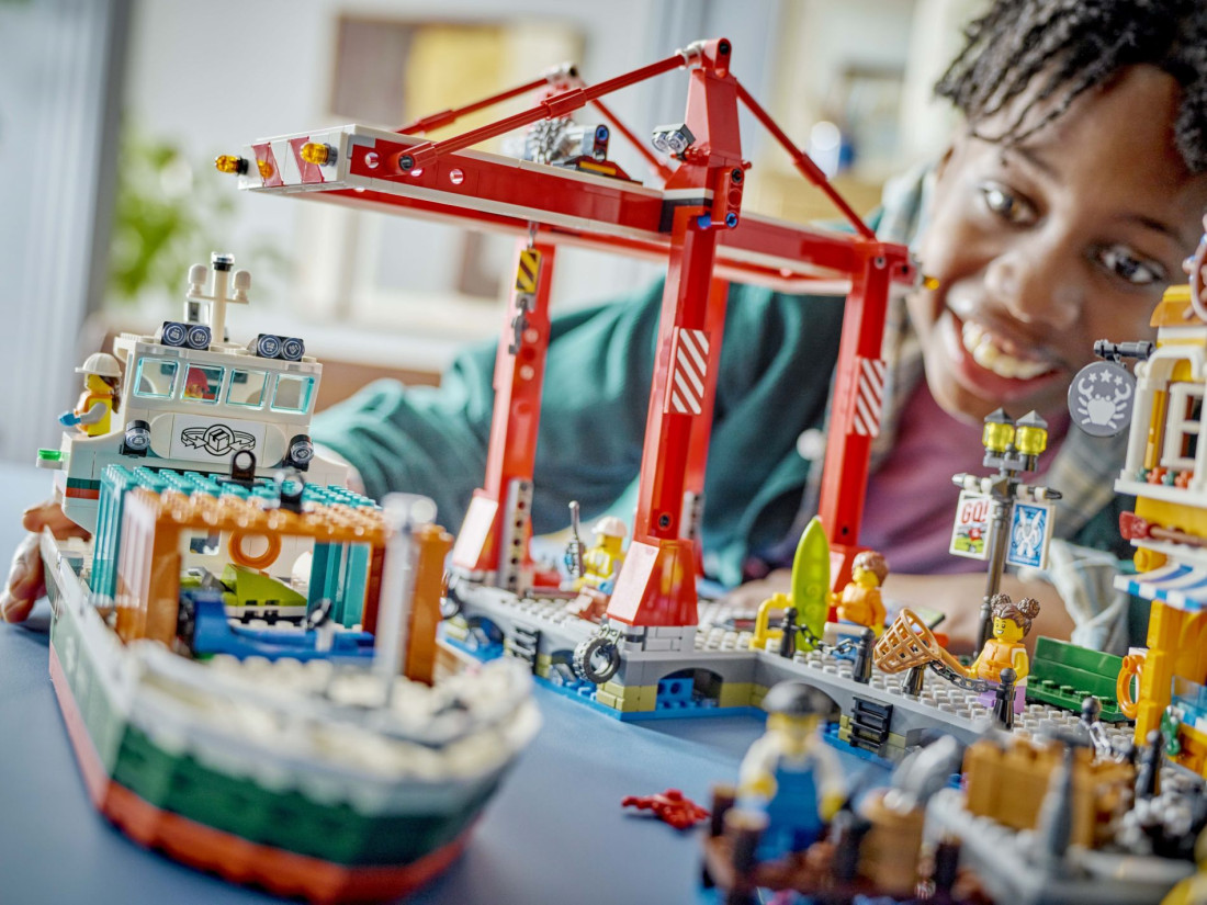 Ігровий набір «Приморська гавань та вантажний корабель». Цей набір LEGO® City ідеально підходить для дітей, які люблять морські пригоди.