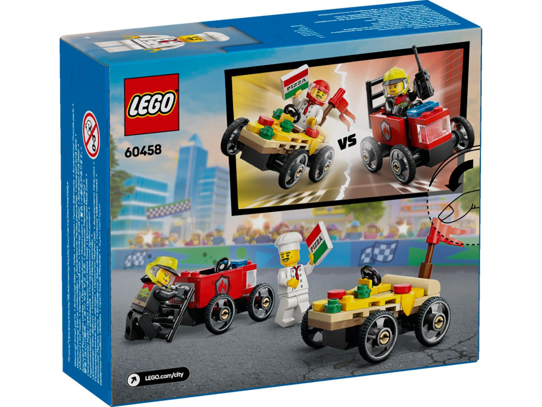 Подаруйте вашому юному автолюбителю захоплюючі гонки з набором LEGO® City Піца-авто проти пожежної машини (60458). Цей захоплюючий гоночний набір ідеально підходить для хлопчиків та дівчаток від 5 років і старше, дозволяючи їм створювати власні епічні міські гонки та розвивати навички рольових ігор.