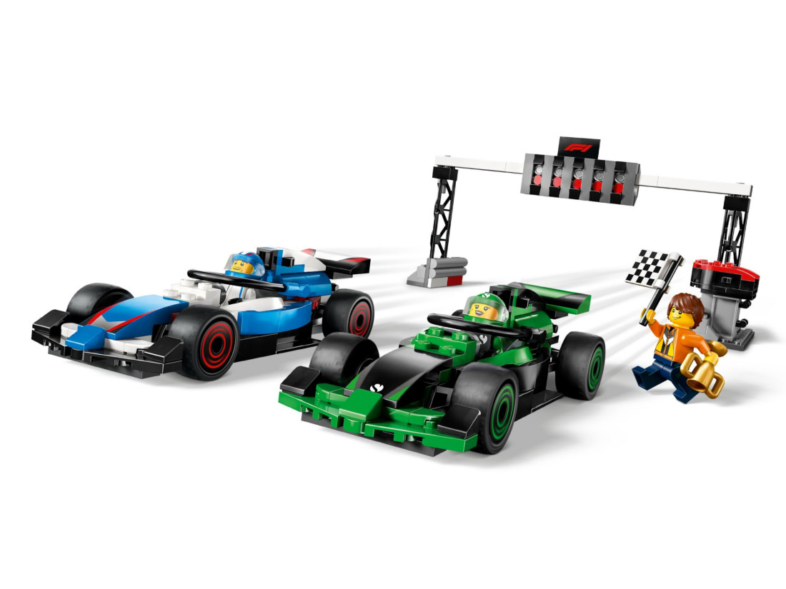 - Дві гоночні машини – Набір включає дві моделі гоночних автомобілів Формули 1, які можна використовувати для імітації старту з гоночної сітки.