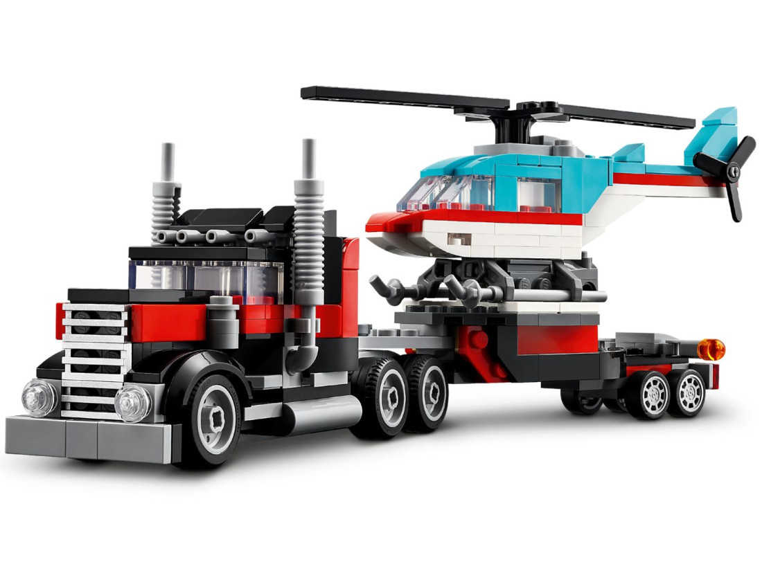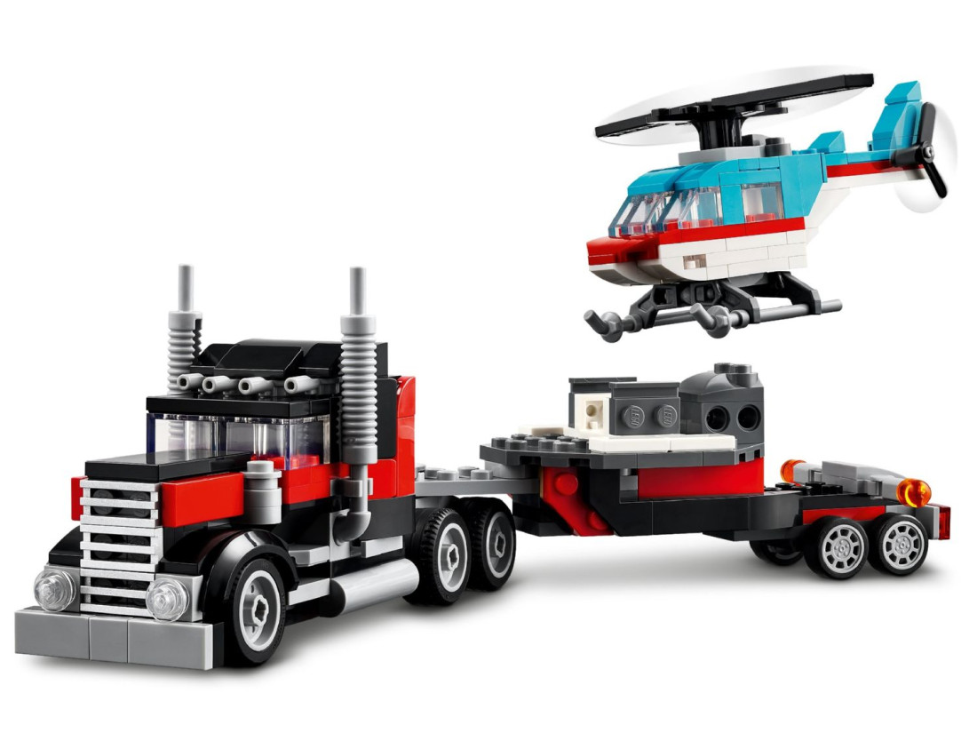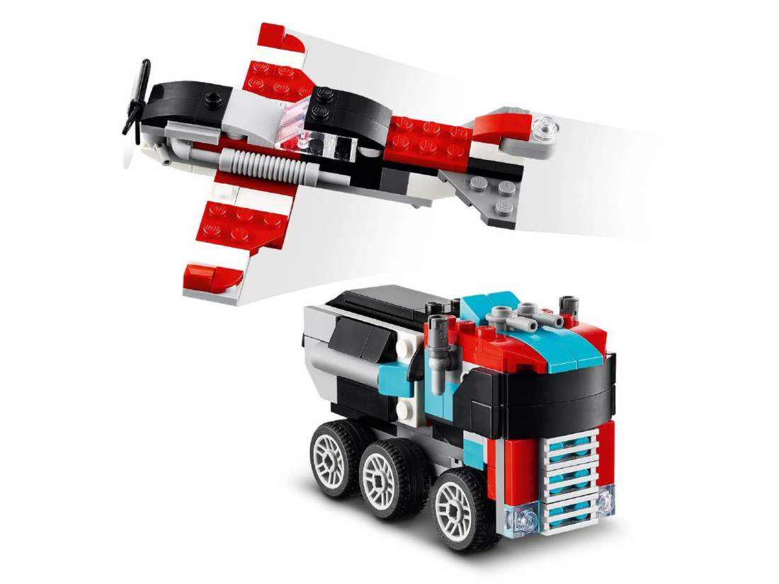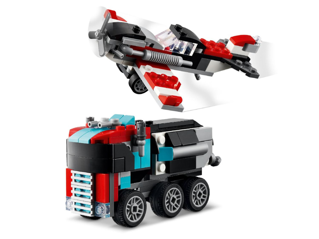 З цим набором LEGO Creator 3в1 діти можуть виявити свою креативність, створюючи 3 різні комбінації транспортних засобів з одного набору цеглинок. Вони можуть почати зі створення автовоза з вертольотом, потім перебудувати його в літак з пропелером і паливну вантажівку з колесами, що рухаються, або створити хот-рід і позашляховик для захоплюючих гонок. Універсальність цього набору також спонукає дітей використовувати уяву для розробки власних унікальних транспортних засобів.