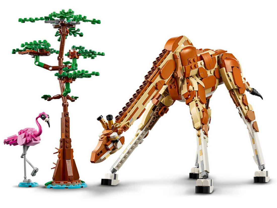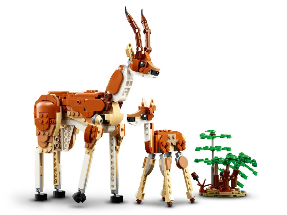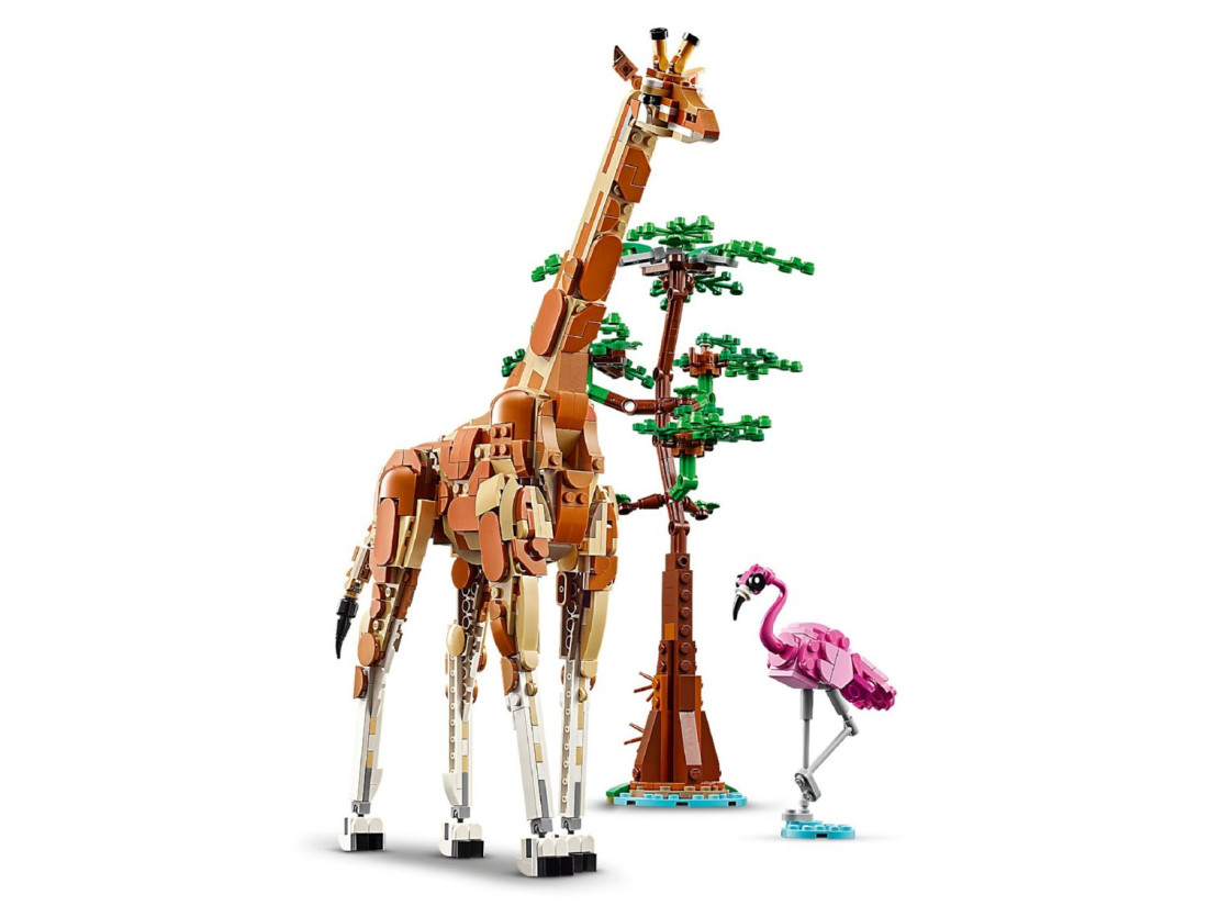 Але веселощі на цьому не закінчуються! Цей набір LEGO Creator 3в1 пропонує дітям можливість перебудувати жирафу та фламінго у двох газелях, мати та теля, з двома чагарниками. Або ж вони можуть перетворити цеглини на грізного лева з деревом і метеликом. Кожна фігурка тварини повністю рухлива, що робить пригоди ще цікавішими.