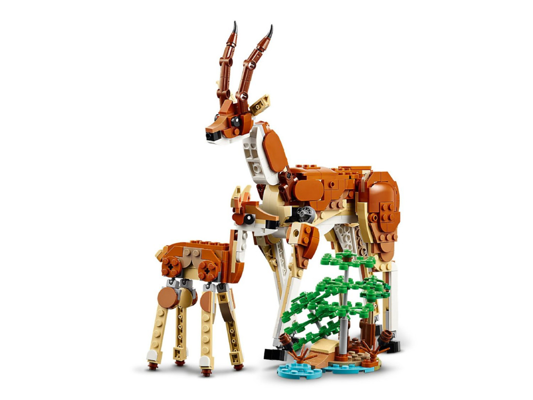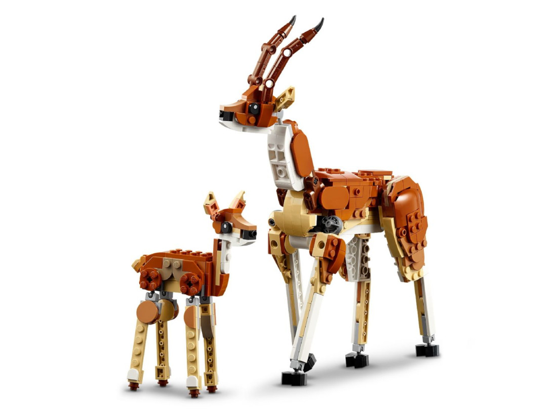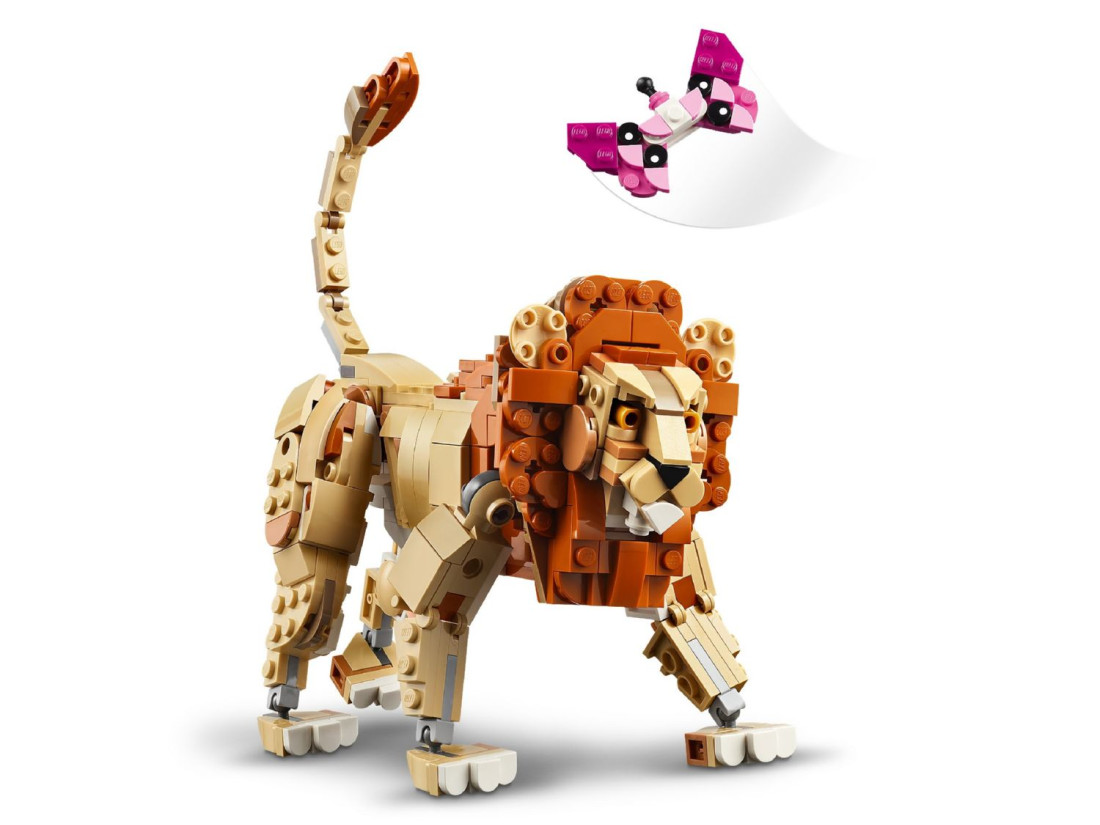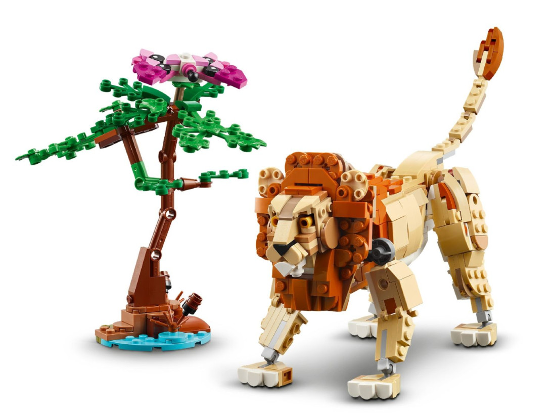 Але веселощі на цьому не закінчуються! Цей набір LEGO Creator 3в1 пропонує дітям можливість перебудувати жирафу та фламінго у двох газелях, мати та теля, з двома чагарниками. Або ж вони можуть перетворити цеглини на грізного лева з деревом і метеликом. Кожна фігурка тварини повністю рухлива, що робить пригоди ще цікавішими.