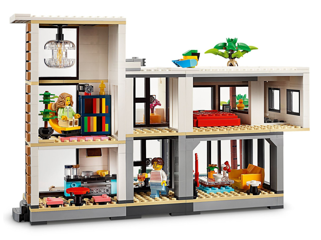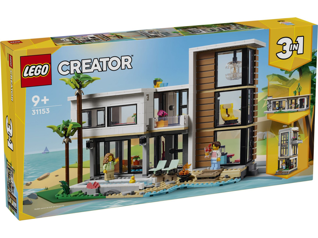 Представляємо ігровий набір LEGO® Creator «Сучасний дім» (31153), який ідеально підходить для хлопчиків та дівчаток від 9 років та старше. Цей універсальний набір дозволяє юним будівельникам побудувати та досліджувати три різні будинки, використовуючи один і той же набір із 939 кубиків. Основна модель являє собою розкішний двоповерховий пляжний будиночок з кухнею, вітальнею, читальним залом, спальнею, душовою кімнатою, балконом та сучасними меблями, такими як крісло та люстра. Тут навіть є басейн для творчих рольових пригод.