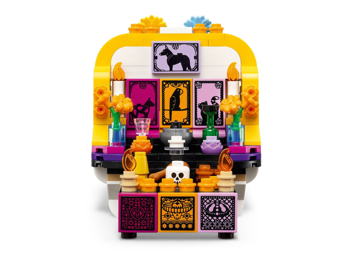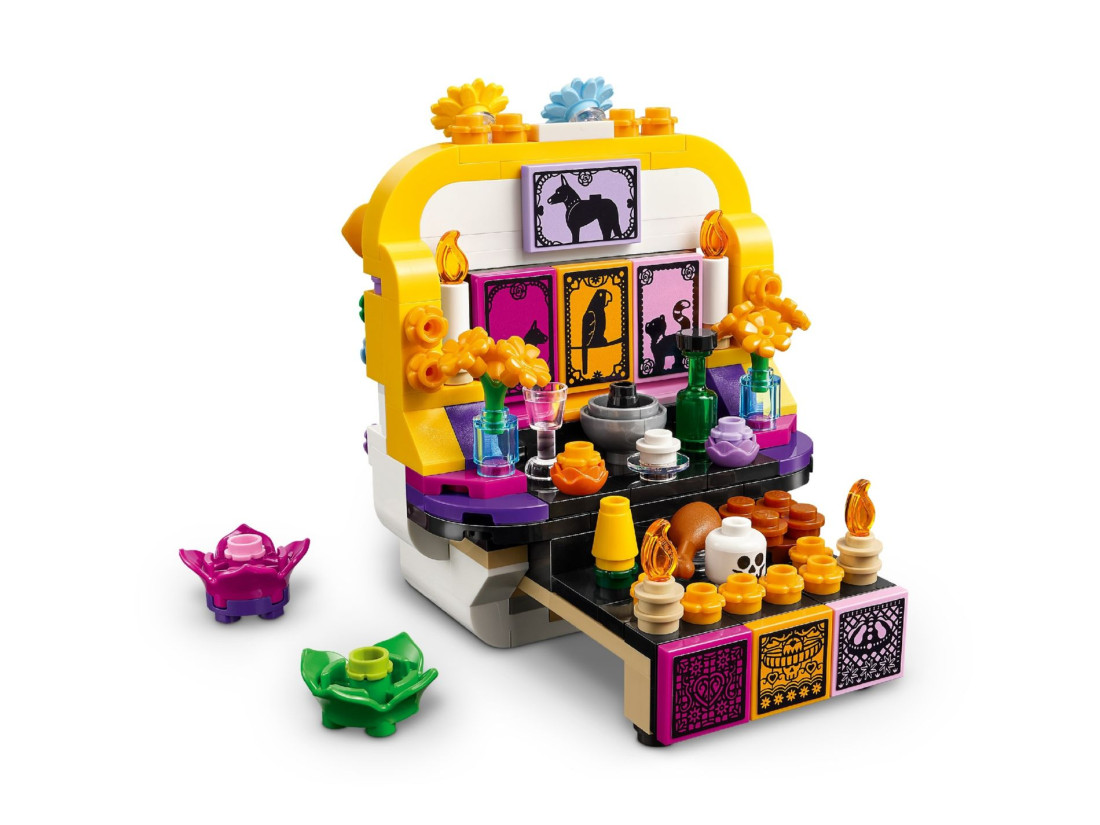Шанобливе нагадування про традиції Дня мертвих представлено в наборі LEGO CREATOR «Вівтар», де з деталей складається атмосферна міні-діорама. Конструкція задумана як декоративний об’єкт і водночас як пізнавальний проєкт: дитина знайомиться із символікою свята, а дорослим буде приємно розмістити готову модель на полиці або робочому столі.