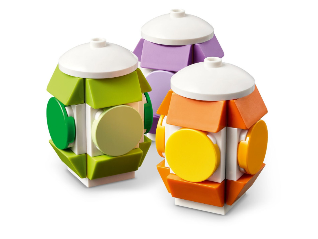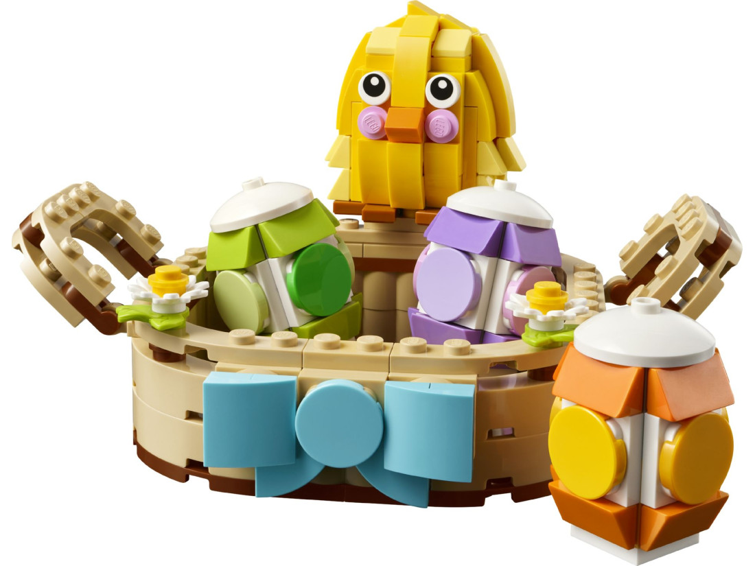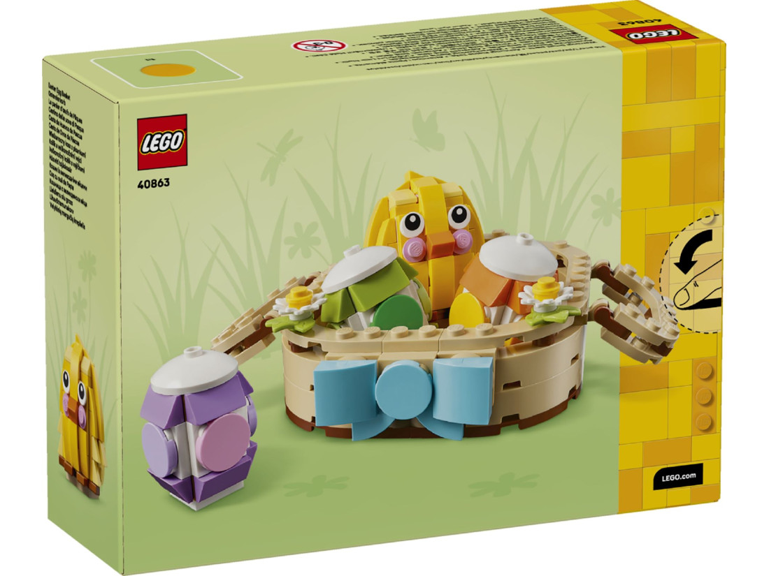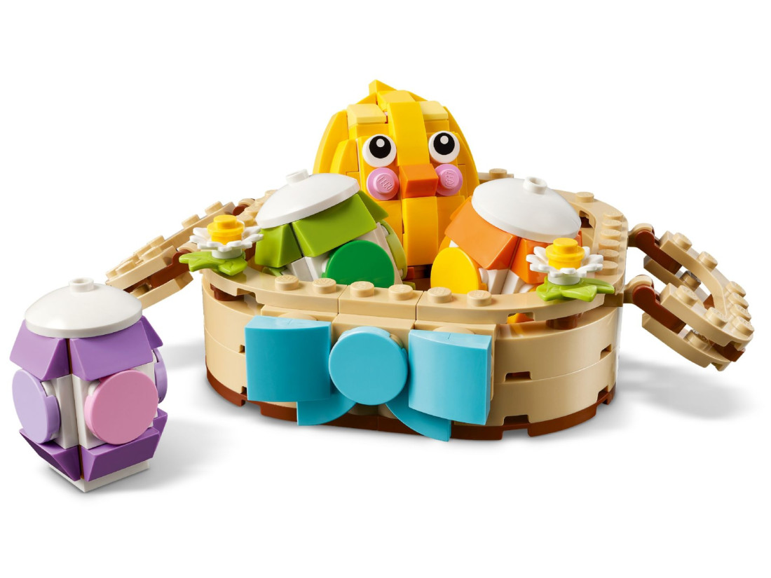 Набір LEGO Creator «Кошик з великодніми яйцями» (40863) — сезонна збірка для дітей від 7 років, яка перетворює тему весни на спокійне творче заняття. Яскравий кошик зі святковими елементами слугує декоративним акцентом і водночас майданчиком для сюжетної гри. Усередині вміщуються три великодні яйця ніжних пастельних відтінків, миле курча і дві невеликі квіткові композиції. Деталі можна діставати, міняти місцями та комбінувати, створюючи нові сценки й варіюючи оформлення.