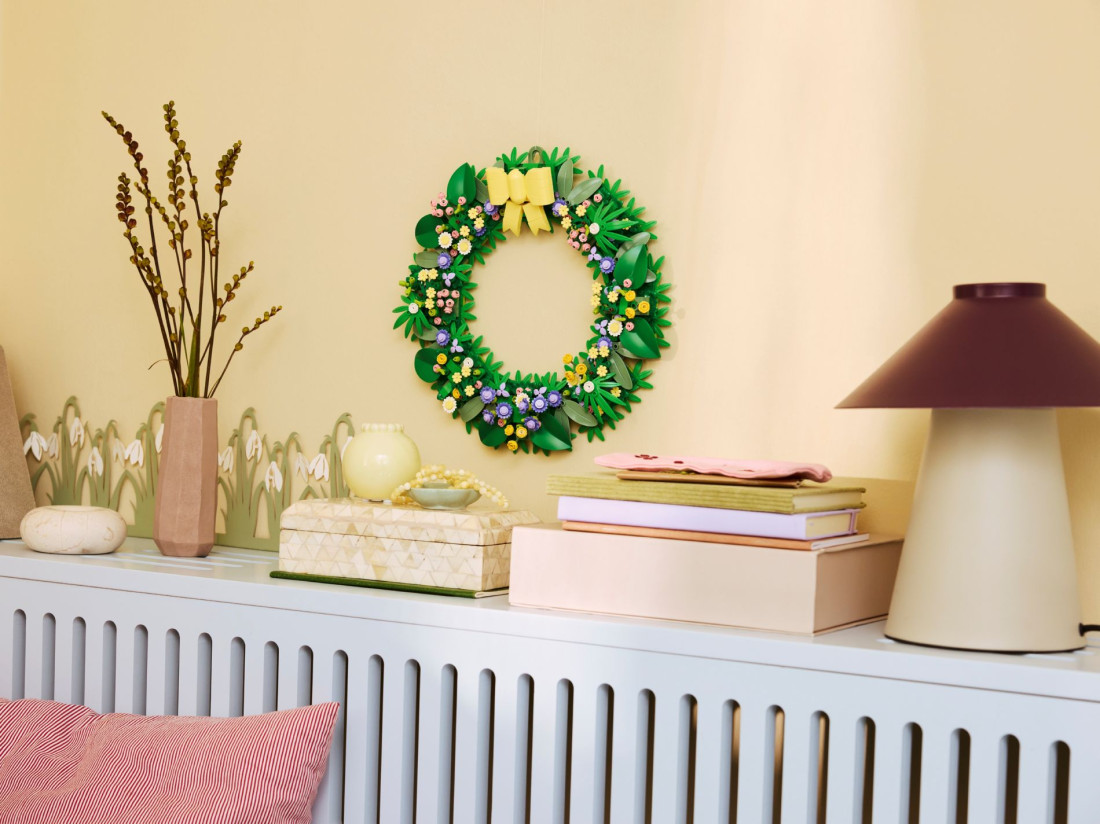 Набір LEGO Creator Весняний вінок (40957) пропонує зібрати яскраву сезонну прикрасу для дому. Конструкція з цеглинок призначена для збирачів 12+ і допомагає оформити інтер’єр до весни та Великодня: вінок виглядає як повноцінний декоративний елемент і органічно вписується в сучасне оформлення кімнати, передпокою або вітальні.