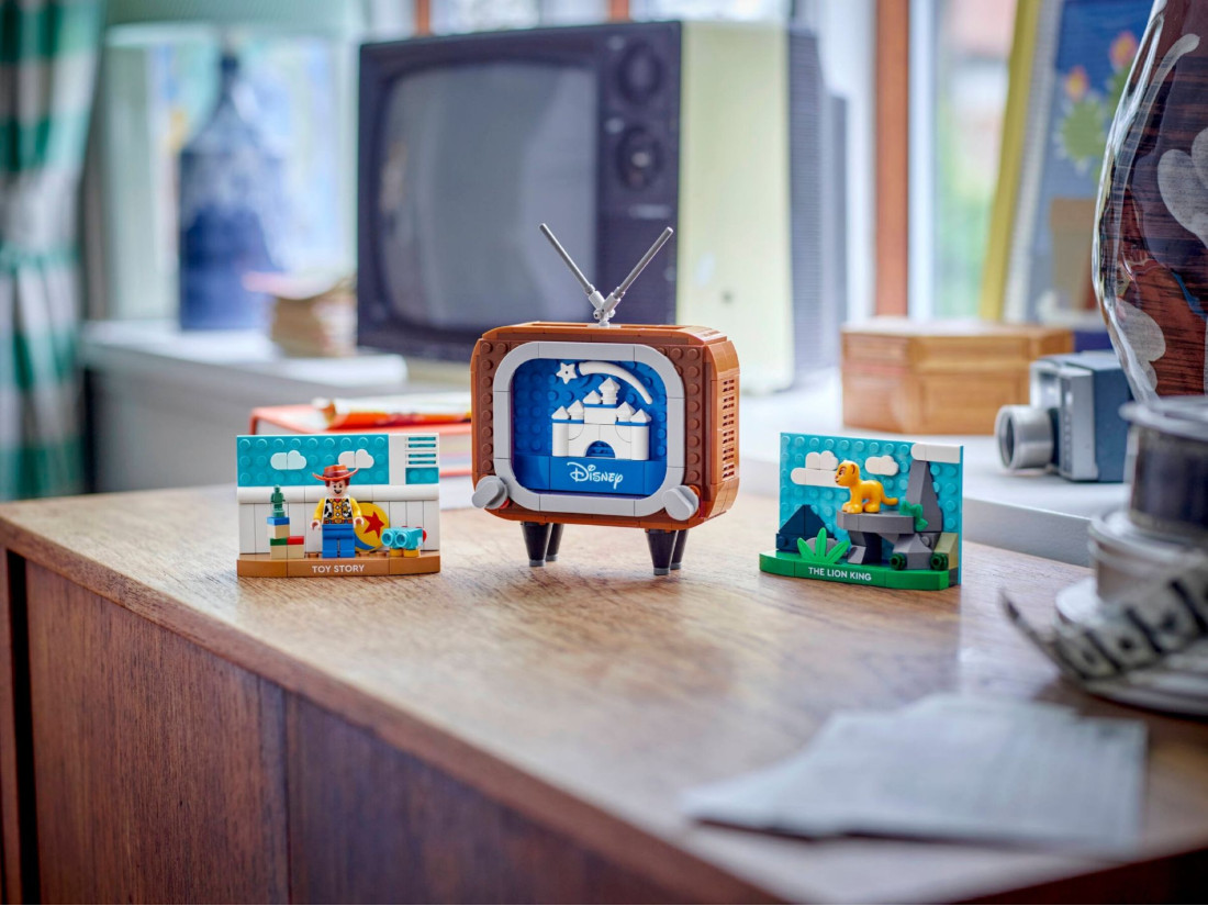 До комплекту входять три ілюстративні сцени з відомих фільмів Disney, а також фігурки Сімби та Вуді, які можна вийняти з корпусу телевізора й виставити окремо. Конструювання з 270 деталей розраховане на вік 9+ і підходить як для неквапливої творчості, так і для акуратної демонстрації на полиці чи робочому столі. Готова модель має розміри приблизно 17 × 12 × 4 см, що робить її зручною для розміщення в інтер’єрі.