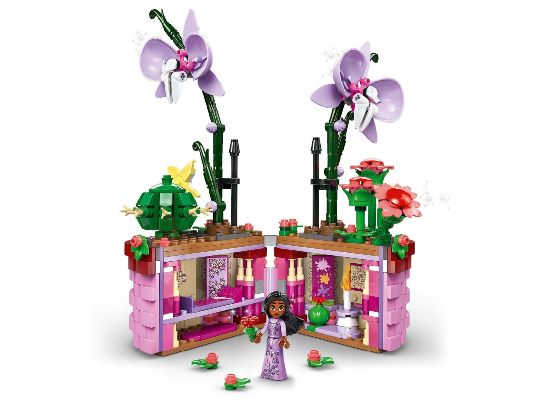 Цей хитромудрий подарунок Діснея з квітковим горщиком на шарнірах, який відкривається, відкриваючи приховану кімнату, наповнену чудовими деталями фільмів, пропонує нескінченні можливості для гри. Набір, що включає фігурку міні-лялечки Ізабели LEGO® Disney, а також іграшки-квіти LEGO, що збираються з орхідей та кактусів, спонукає до творчого розповідання історій та рольових пригод.
