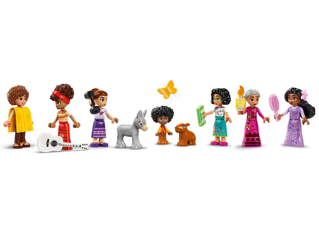 У цей захоплюючий набір входять 6 фігурок міні-лялечок: Мірабель, Абуела, Ізабела, Долорес, Луїза та Каміло, а також фігурка мікролялечки Антоніо та дві фігурки тварин. Ці персонажі у поєднанні з хитромудрими кімнатами та аксесуарами дозволяють дітям відтворювати свої улюблені сцени з фільмів або вигадувати нові історії. Будинок також можна поєднати з іншими наборами LEGO, щоб відкрити ще більше творчих можливостей.