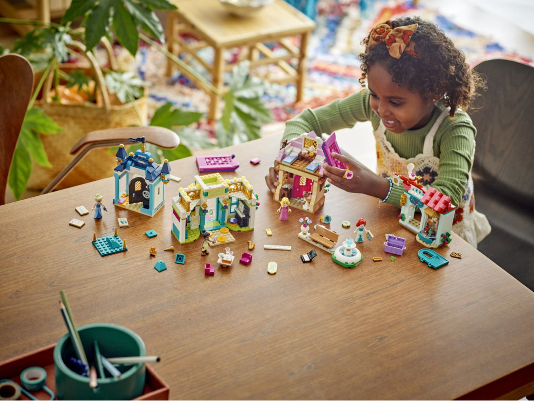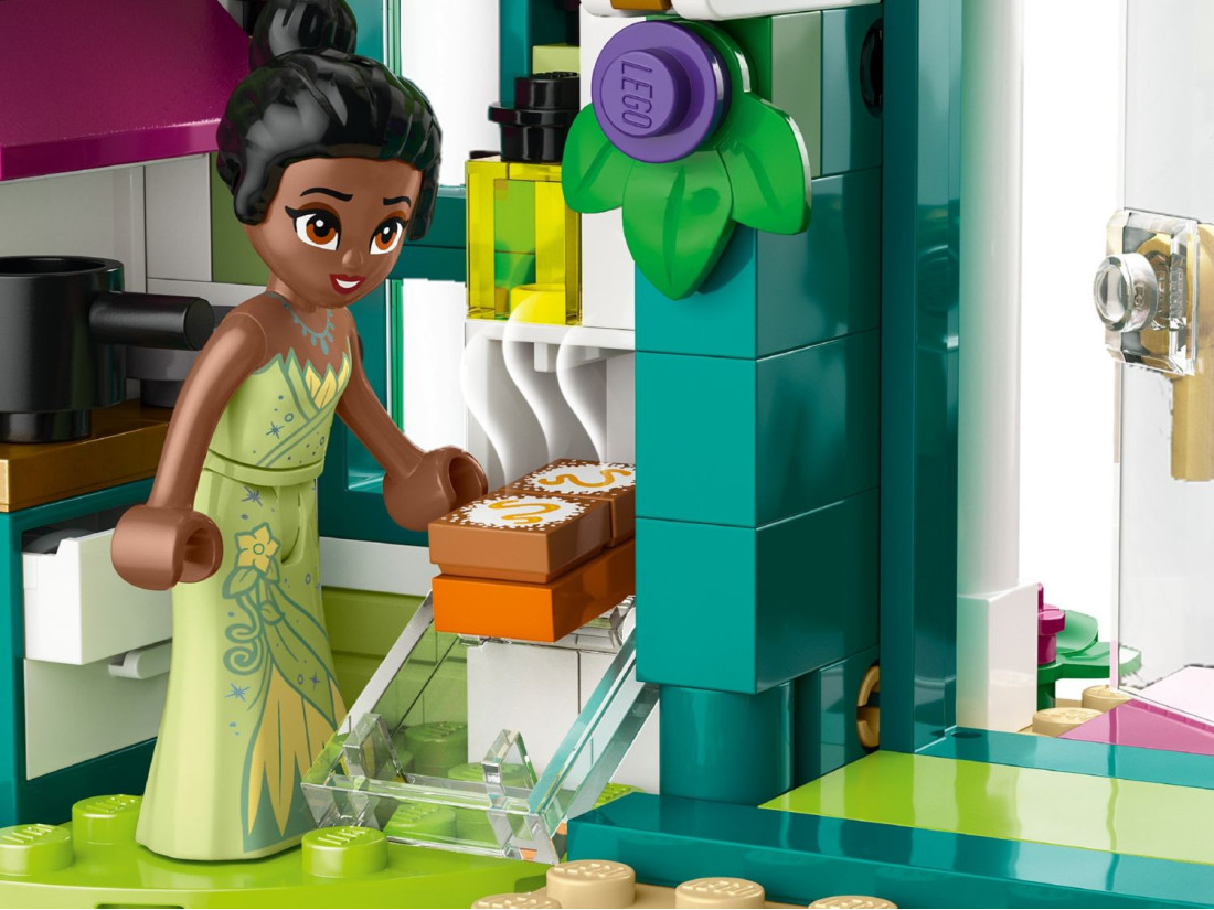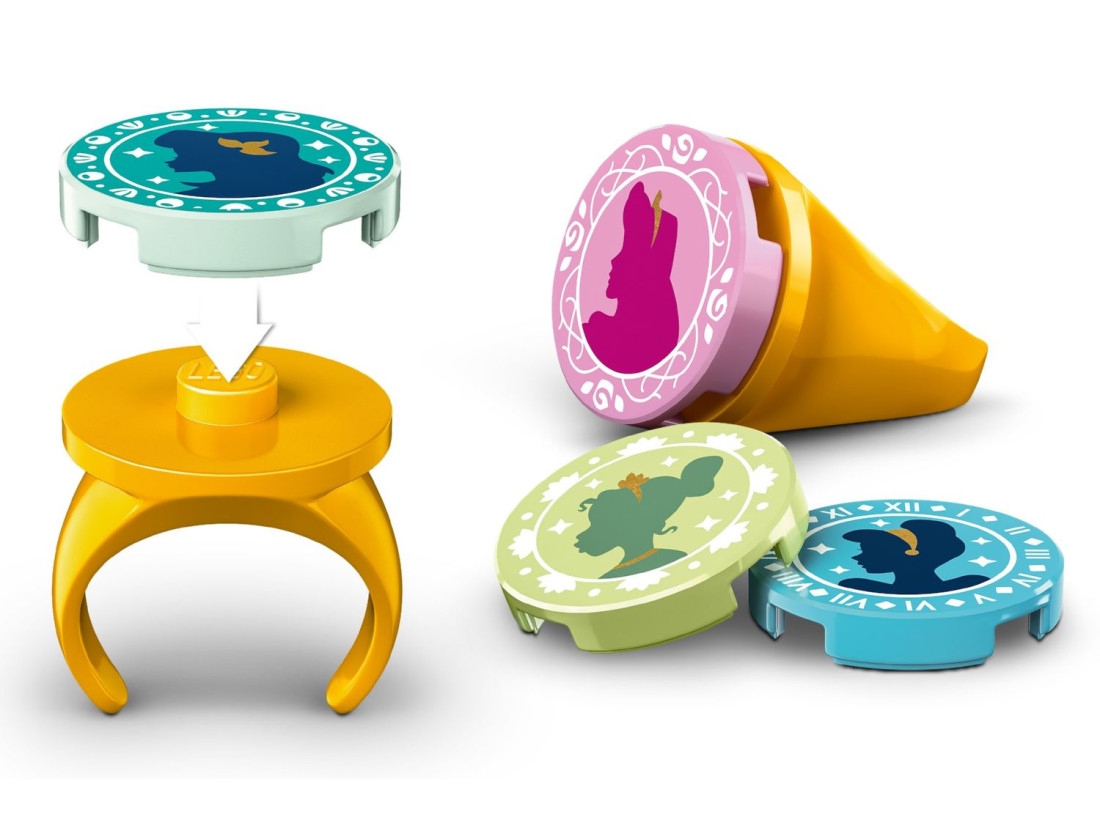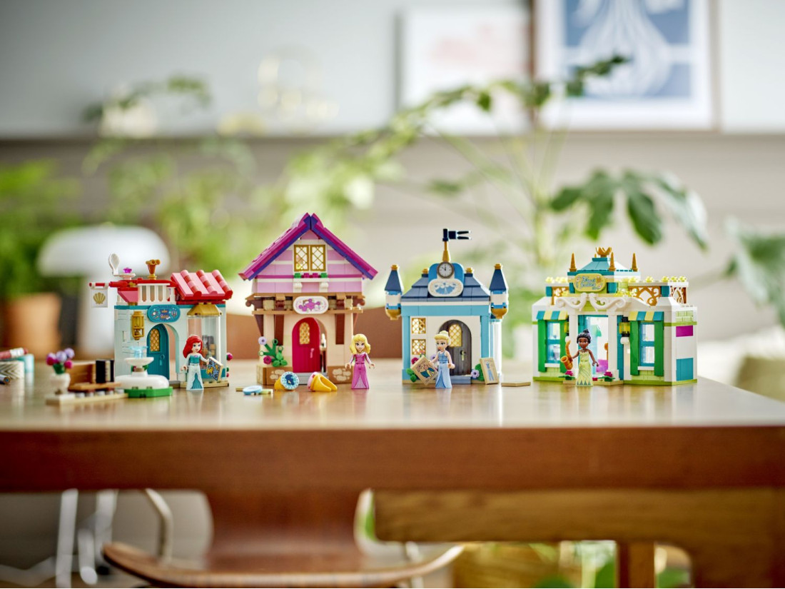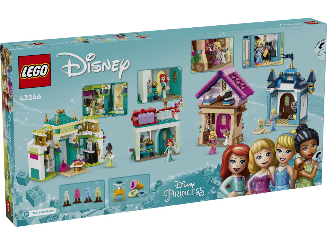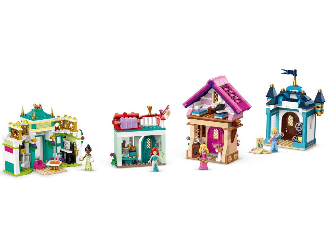 Цей набір Disney Princess надихає дітей вигадувати власні пригоди на ринку та розігрувати чарівні історії. Кожна будівля має унікальні деталі, що відповідають нарядам принцес, а в ресторані Тіани є місце для зберігання колекційних кілець, і в магазині скарбів – скриня зі скарбами. Діти можуть відтворювати чарівні моменти, кидаючи монетку у фонтан та насолоджуючись теплим бене.