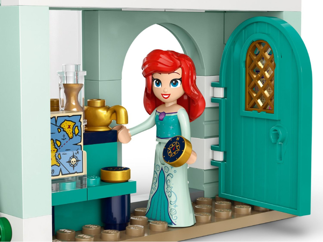 - Ігровий набір Disney Princess – Включає 4 будівлі, квітковий горщик, лавку, фонтан і улюблених персонажів Тіану, Аврору, Попелюшку та Аріель.