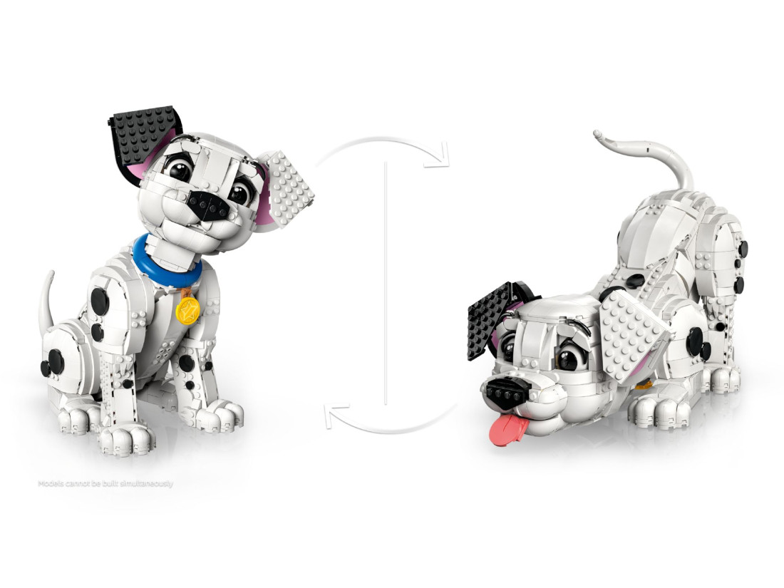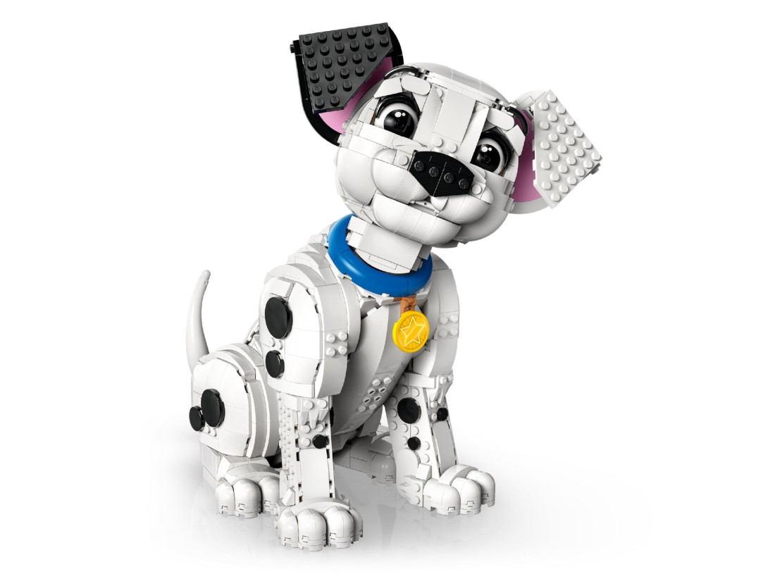 Колекційний конструктор LEGO Disney «Цуценя далматина» (43269) запрошує пригадати атмосферу класичного мультфільму та зібрати експозиційну модель для дорослих шанувальників. Під деталізованим корпусом із 1722 елементів прихована продумана шарнірна система: голову, хвіст і лапи можна повертати, встановлюючи цуценя в стійкі пози для демонстрації. Гладкі контури, характерні вуха та виразна мордочка створюють впізнаваний силует.