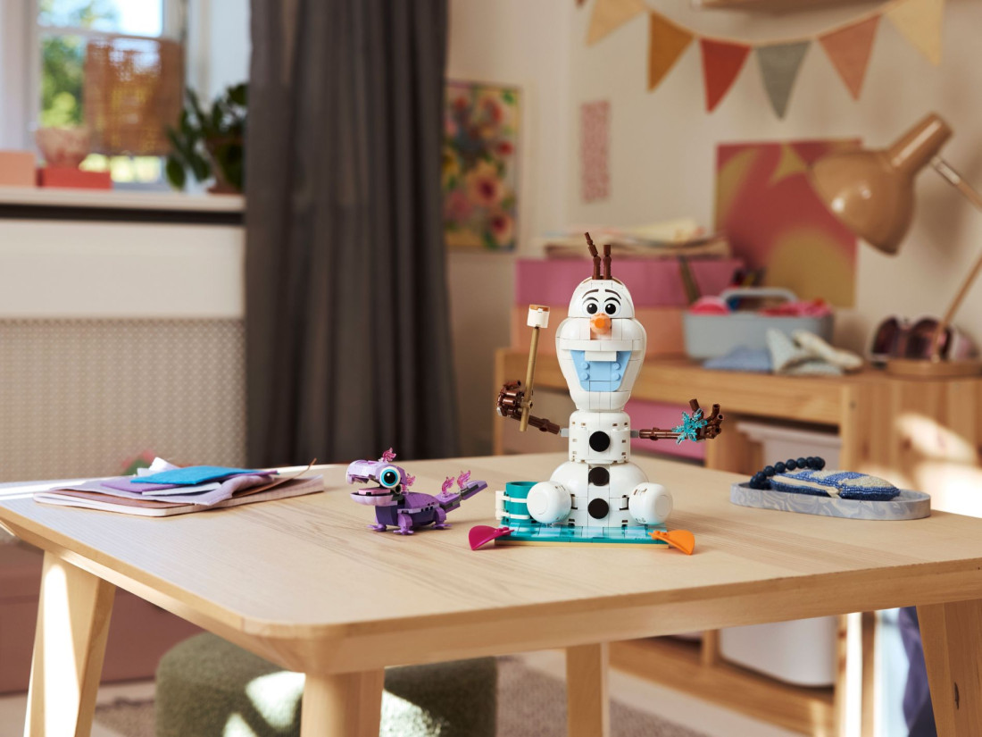 Набір LEGO DISNEY PRINCESS «Пікнік Олафа і Бруні» (43287) запрошує дітей від 7 років влаштувати затишну сцену з всесвіту «Крижаного серця» та розігрувати власні історії. Конструкція збирається як міні-діорама з яскравим картатим пледом у центрі, на якому герої можуть розміститися разом. Після складання модель стане у пригоді не лише для гри, а й як охайний елемент на полиці або робочому столі.