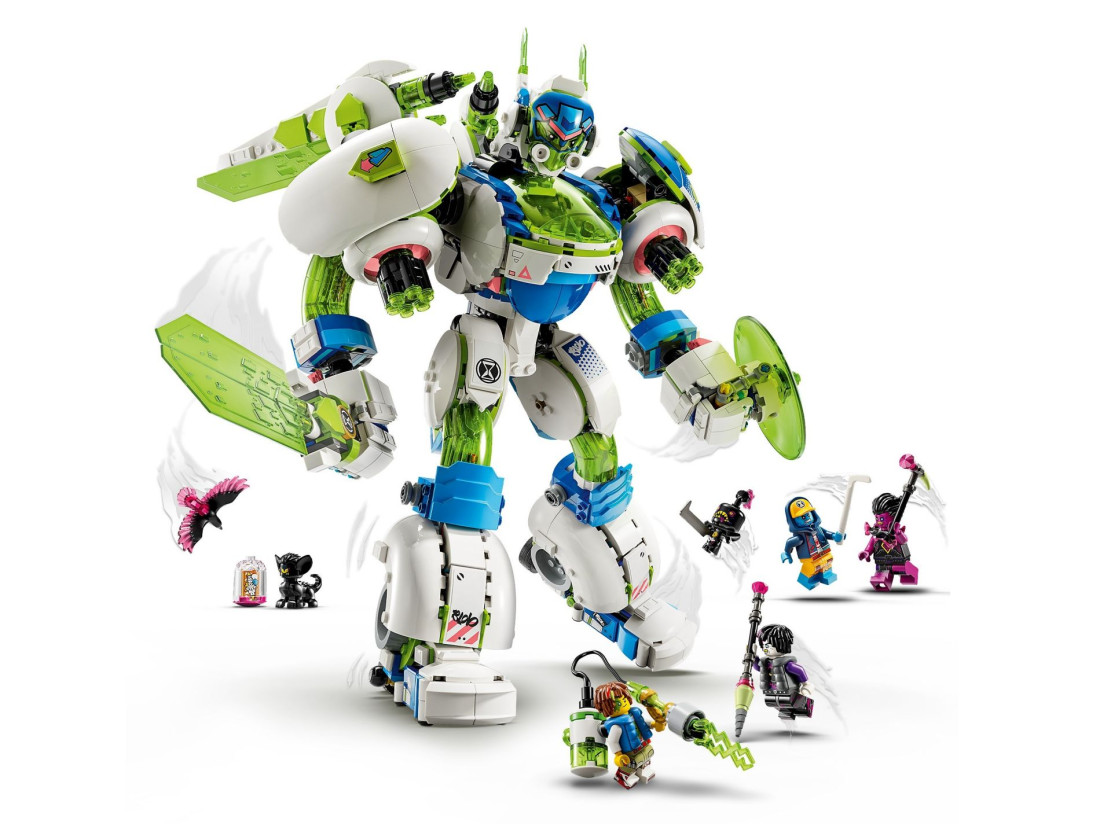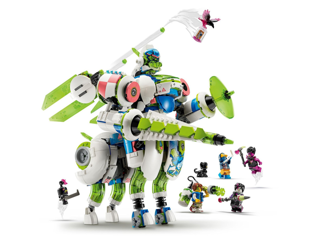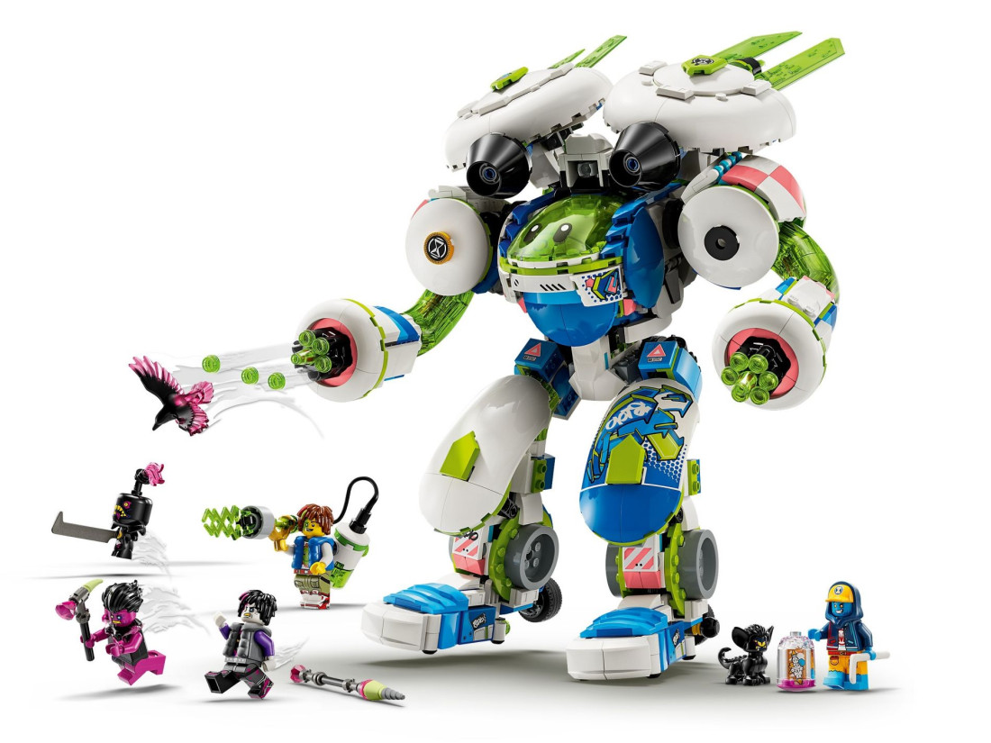 У цей великий набір входять чотири мініфігурки LEGO DREAMZzz: герої Матео та Логан, їх темні двійники МедТео та Доган, а також міньйони Снік та Снівел. Ці персонажі в поєднанні з роботом, що перебудовується, спонукають дітей поринути в творчу гру і стати героями у своїх власних історіях зі світу мрій. У набір також входять сюжетні інструкції зі збирання, як у коробці, так і в цифровому вигляді через додаток LEGO Builder, які дозволяють дітям збільшувати масштаб, обертати моделі в 3D і відстежувати їх прогрес, отримуючи інтерактивний досвід збирання.