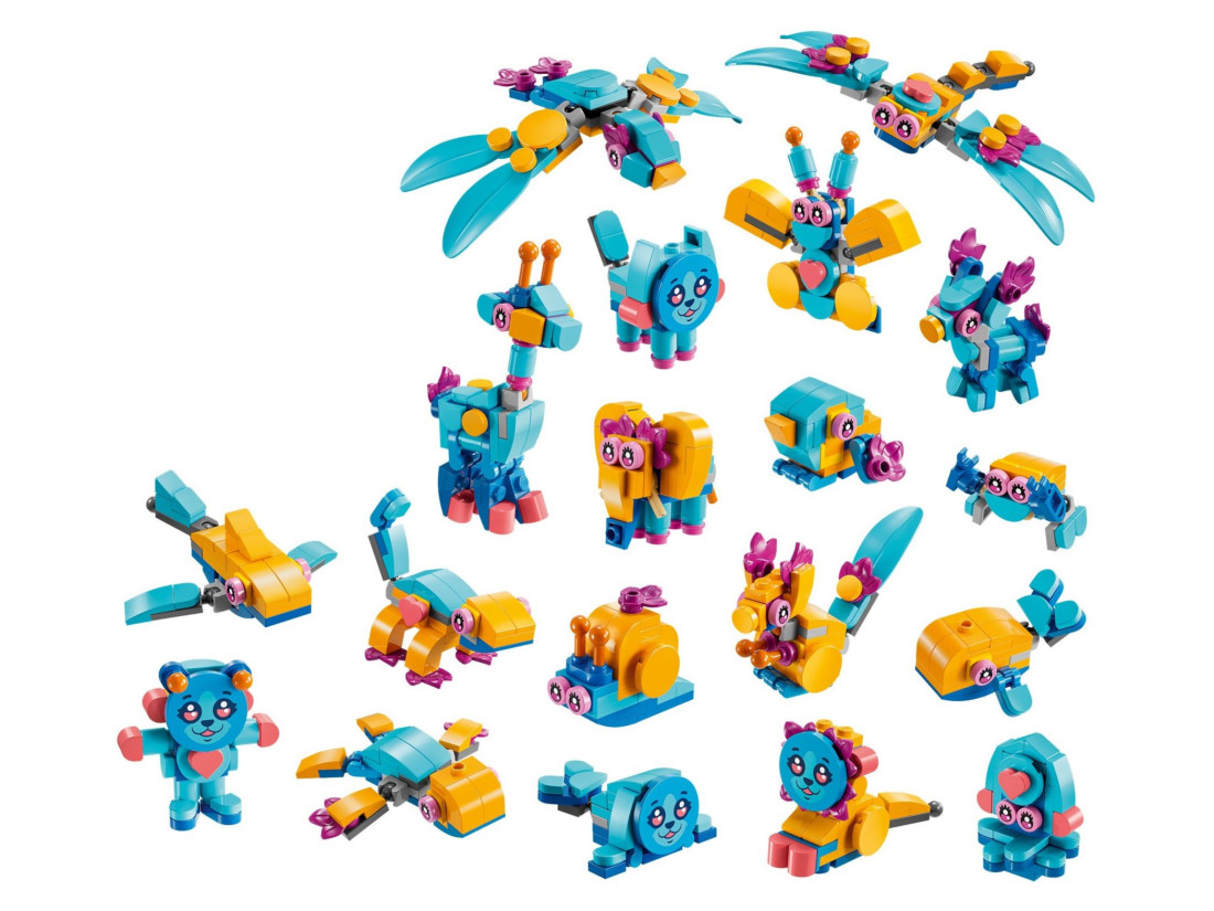 - 20 способів складання – Основна модель може бути перебудована у 19 різних тварин, включаючи лева, черепаху, оленя, метелика, бабку та інші, стимулюючи творче мислення та уяву.