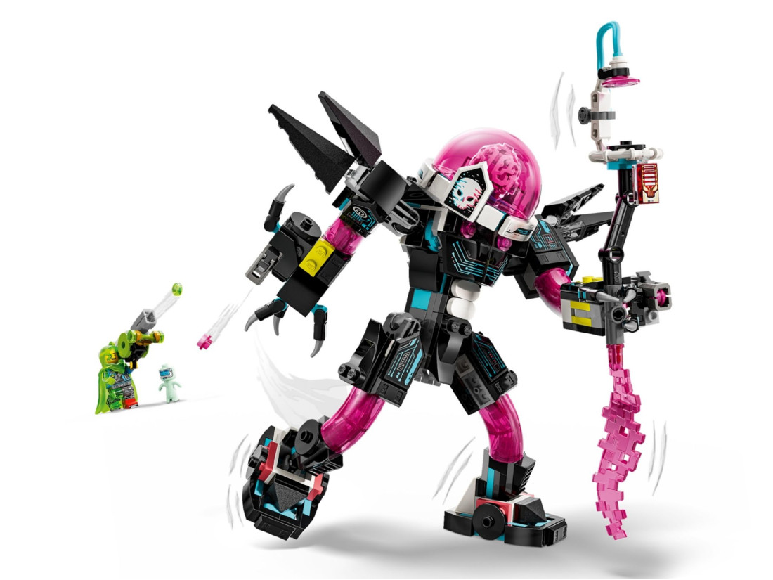 Набір LEGO DREAMZzz «Матео проти кібермозкового меха» (71495) пропонує дітям від 8 років розігрувати альтернативні історії зі світу сновидінь. Капсула героя перетворюється або на грізного робота Cyber Brain, або на скорпіоноподібного меха Cyber Brain — обраний варіант складання визначає хід пригоди та стиль моделі.