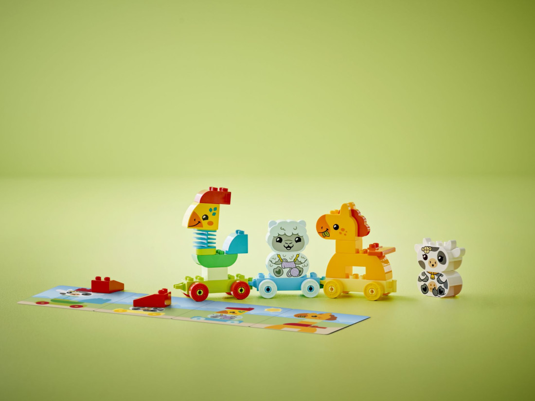 Розміри іграшки з поїздом складають більше 17 см заввишки, 43 см завдовжки і 6 см завширшки, що робить його ідеальним для маленьких ручок. Будь то як подарунок на день народження або особливий сюрприз, LEGO® DUPLO® Мій Перший Поїзд з Тваринами обов'язково порадує малюків, які люблять тварин, транспортні засоби та творче будівництво. Набори LEGO® DUPLO® розроблені відповідно до суворих стандартів безпеки, забезпечуючи безпечне та веселе проведення вашої дитини.