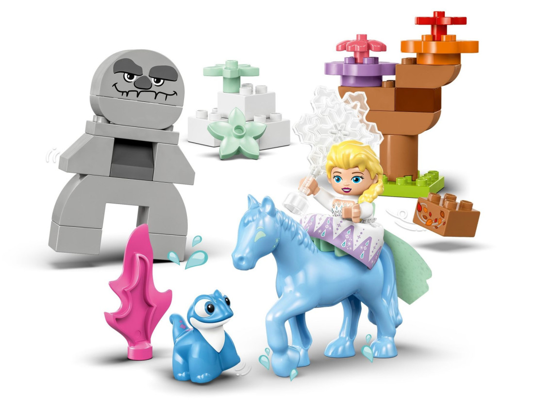 Цей захоплюючий конструктор заохочує самовираження, коли малеча веде Ельзу через містичний Зачарований ліс. З такими деталями, як сніжний кристал, що світиться, і рожеве полум'я Бруні, уява малюків розгорається, коли вони вигадують нові дружби і захоплюючі подорожі. До набору також входить збірна фігура Земного гіганта, яка додає додатковий рівень пригод, коли персонажі дізнаються, як усі істоти сприяють рівновазі природи.
