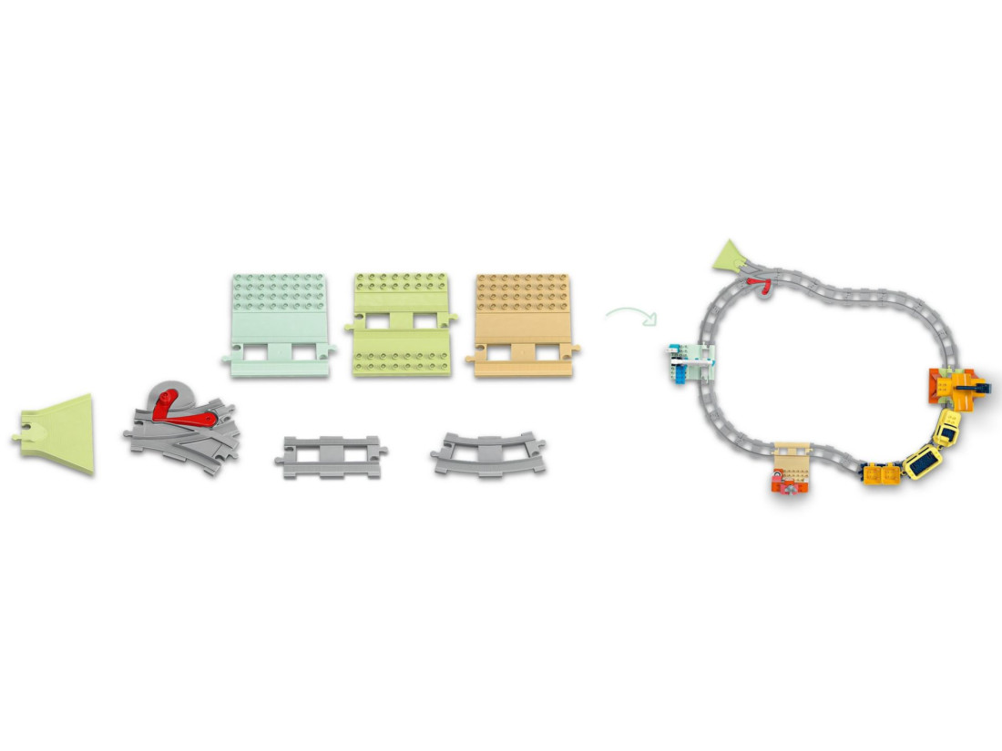 З безкоштовним додатком LEGO® DUPLO® Interactive Trains діти можуть записувати власні звуки для поїзда та навіть керувати локомотивом за допомогою пристрою. Додаток також пропонує ідеї для альтернативних споруд, розширюючи можливості гри.