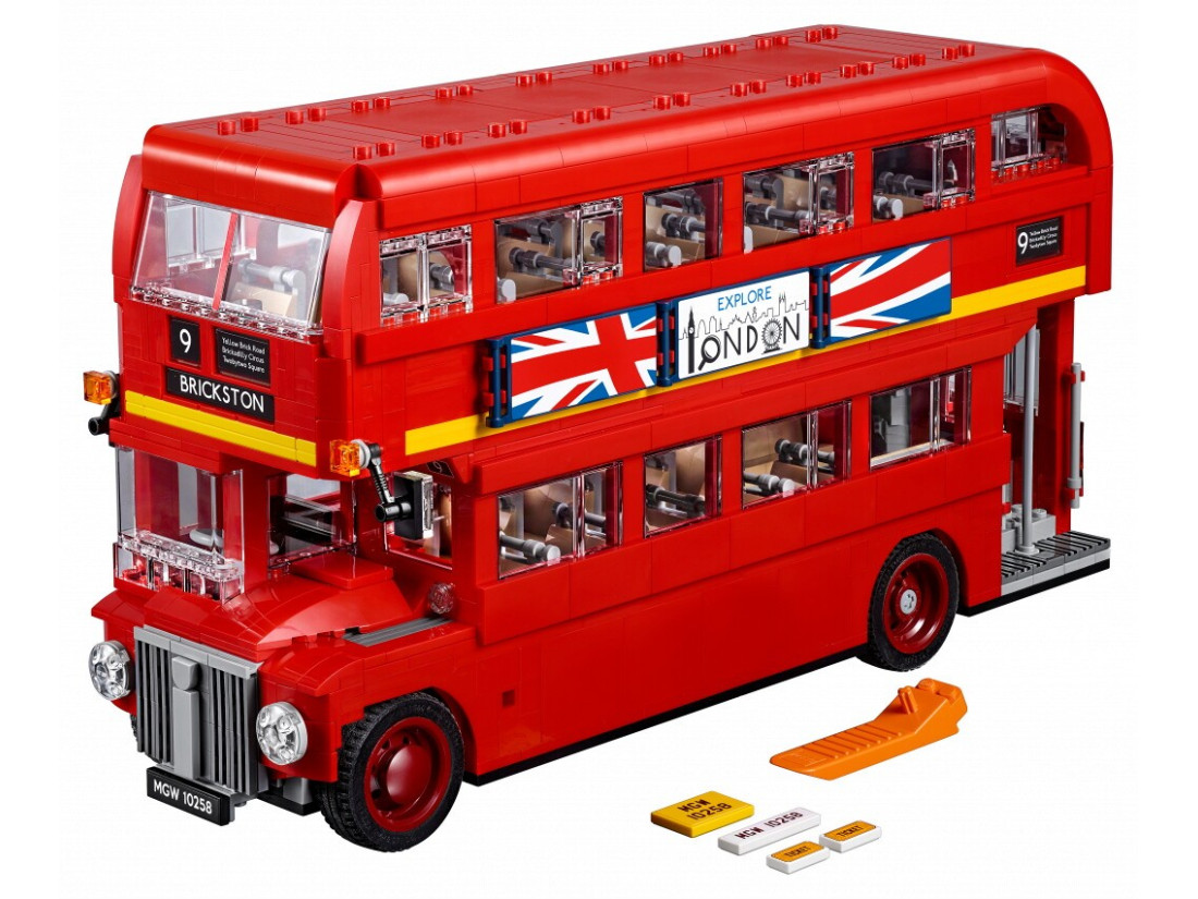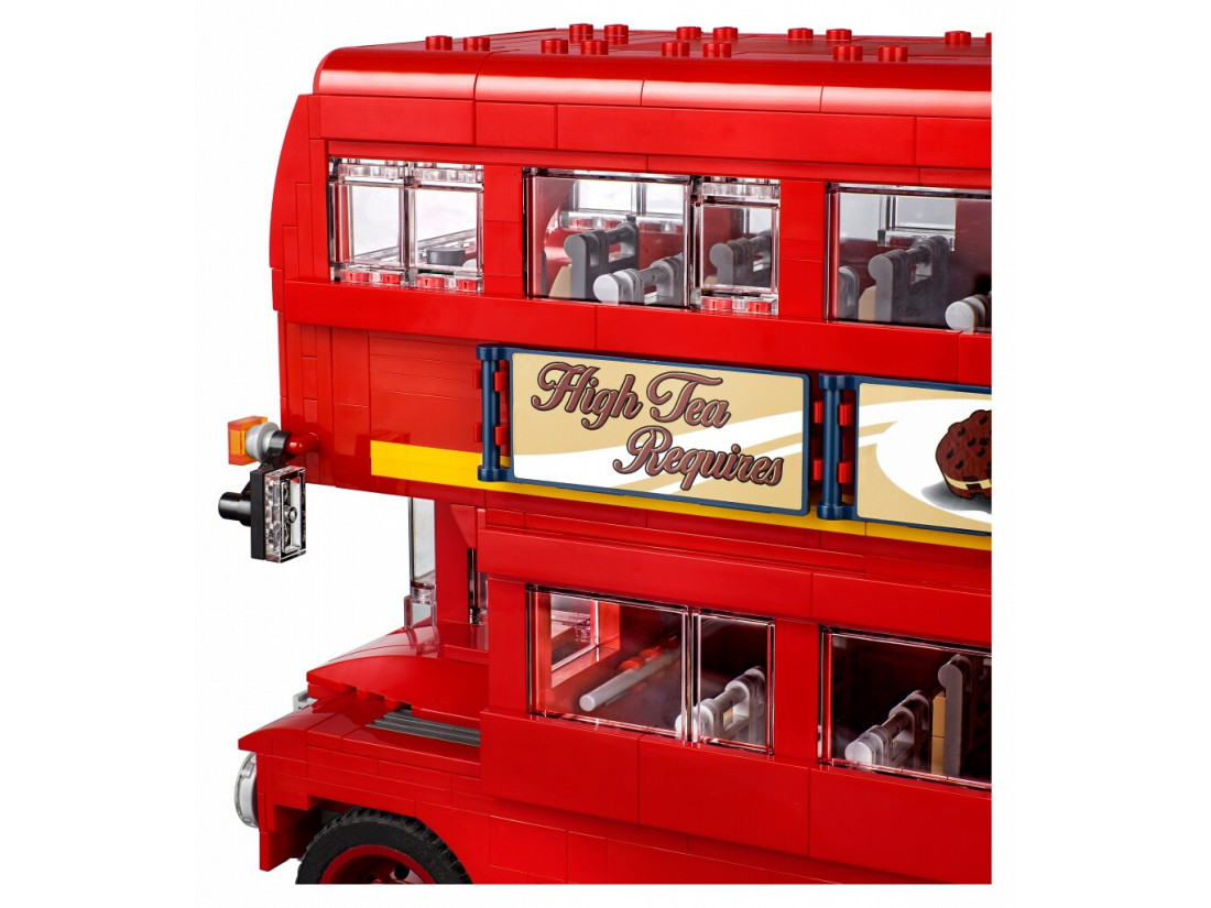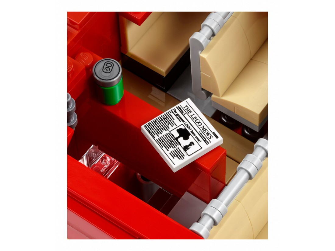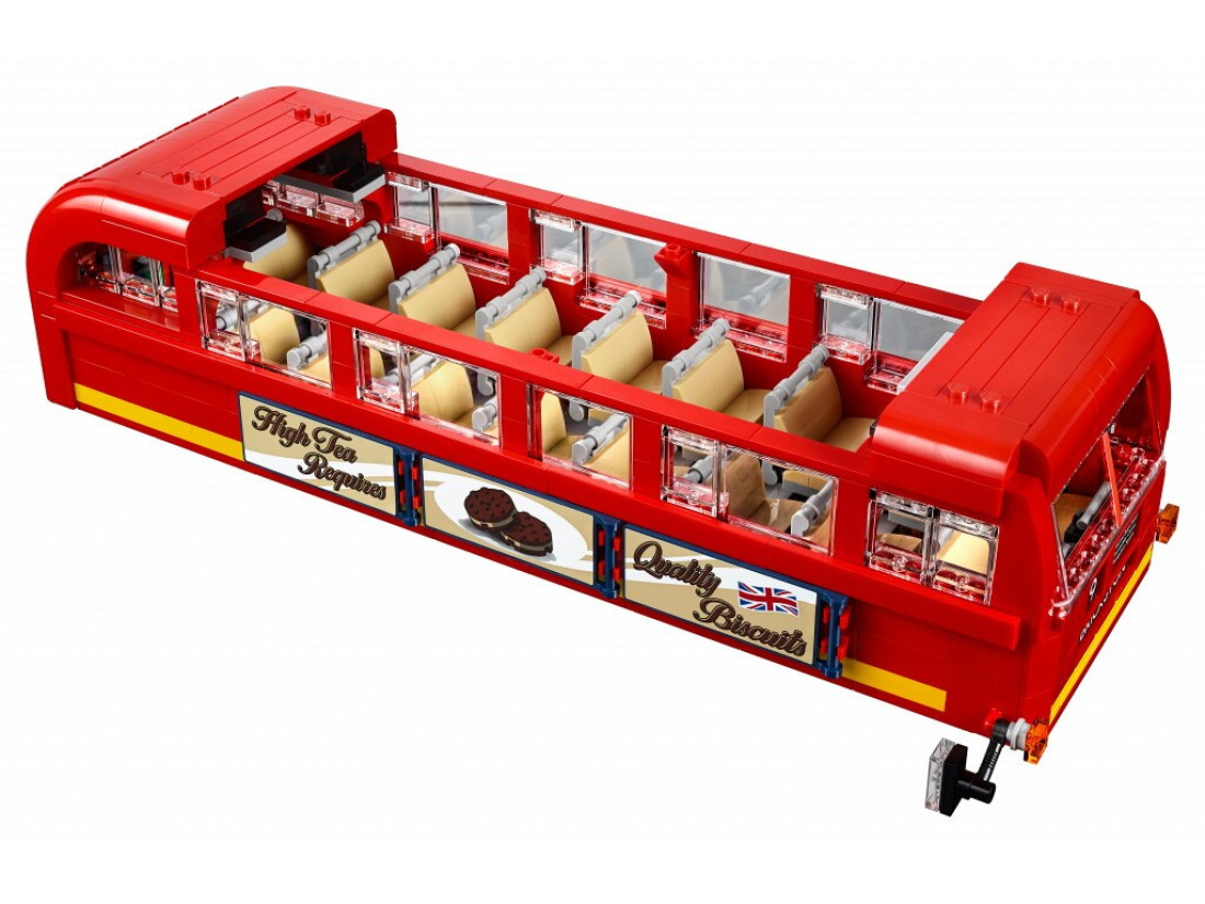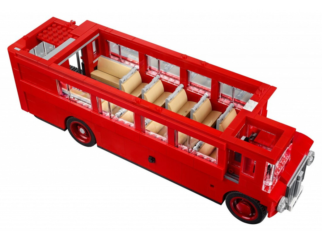 В автобусі реалізовано функції для огляду внутрішньої конструкції: знімається дах і повністю верхній ярус, відкривається капот із мініатюрною моделлю двигуна. Всередині — ряди сидінь, сходи й кабіна водія; на бортах — маршрутні таблички та рекламні постери. Як тематичні аксесуари передбачені парасолька та газета. Набір містить 1686 деталей і рекомендований для вікової категорії 16+.