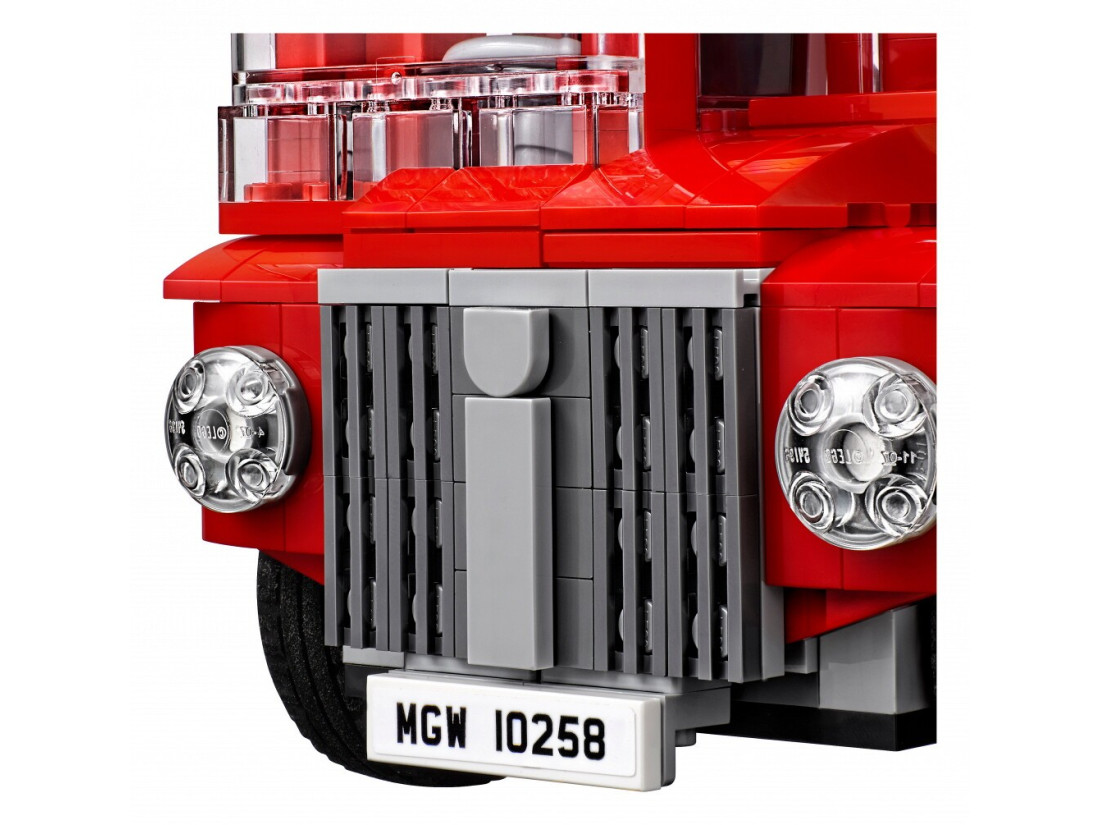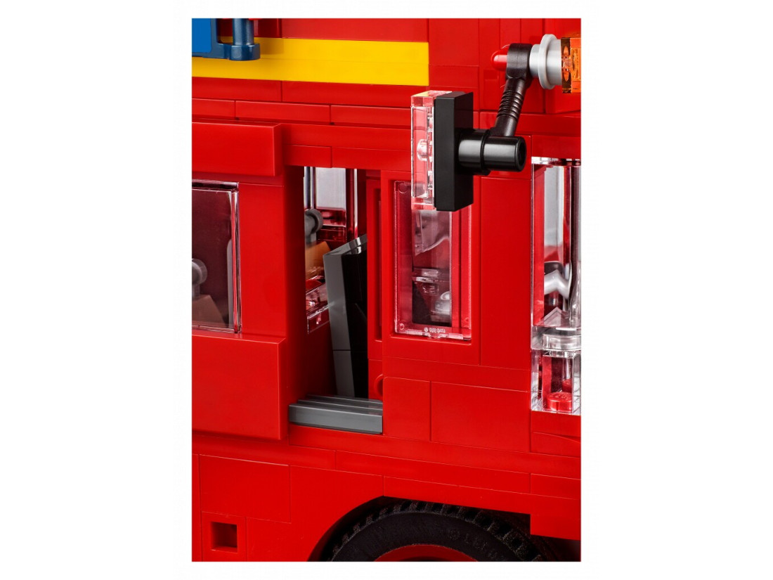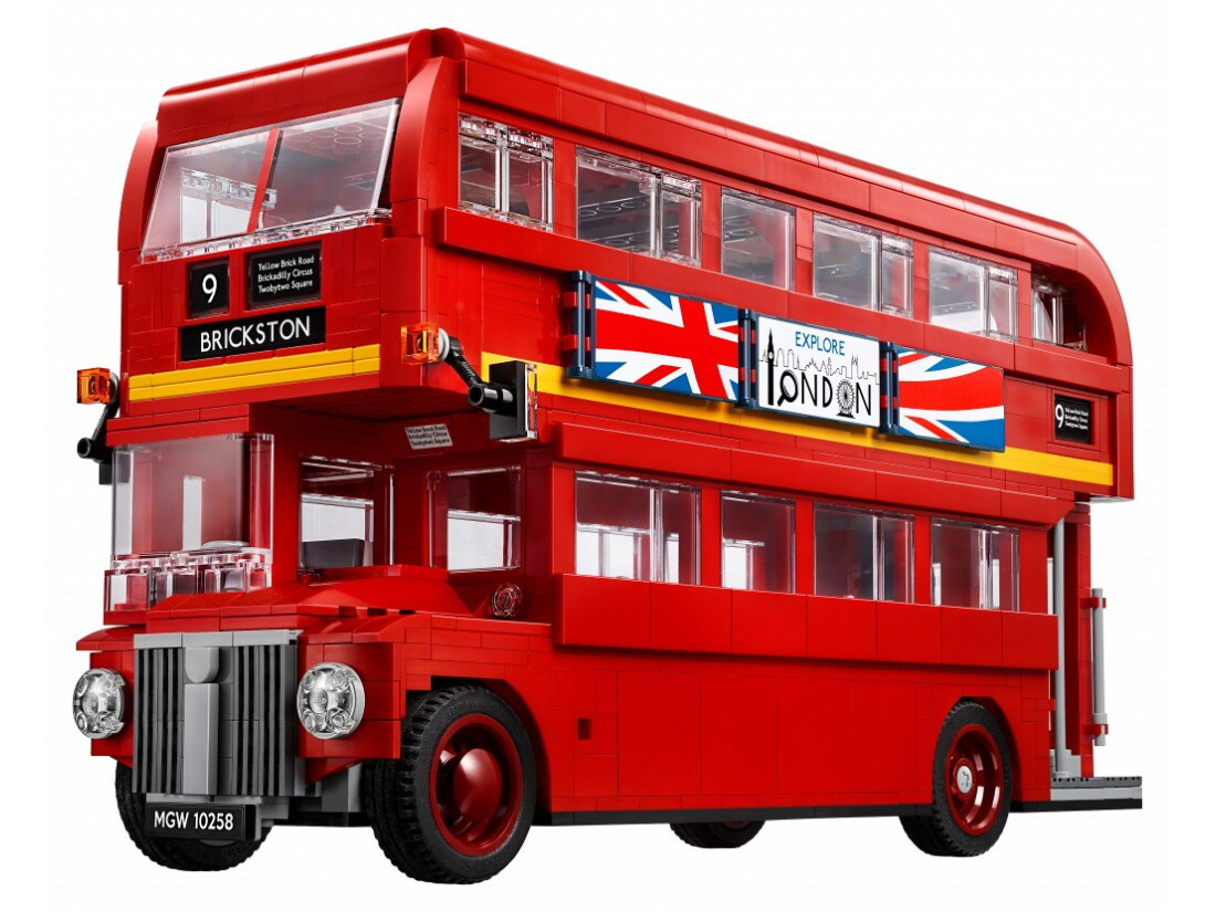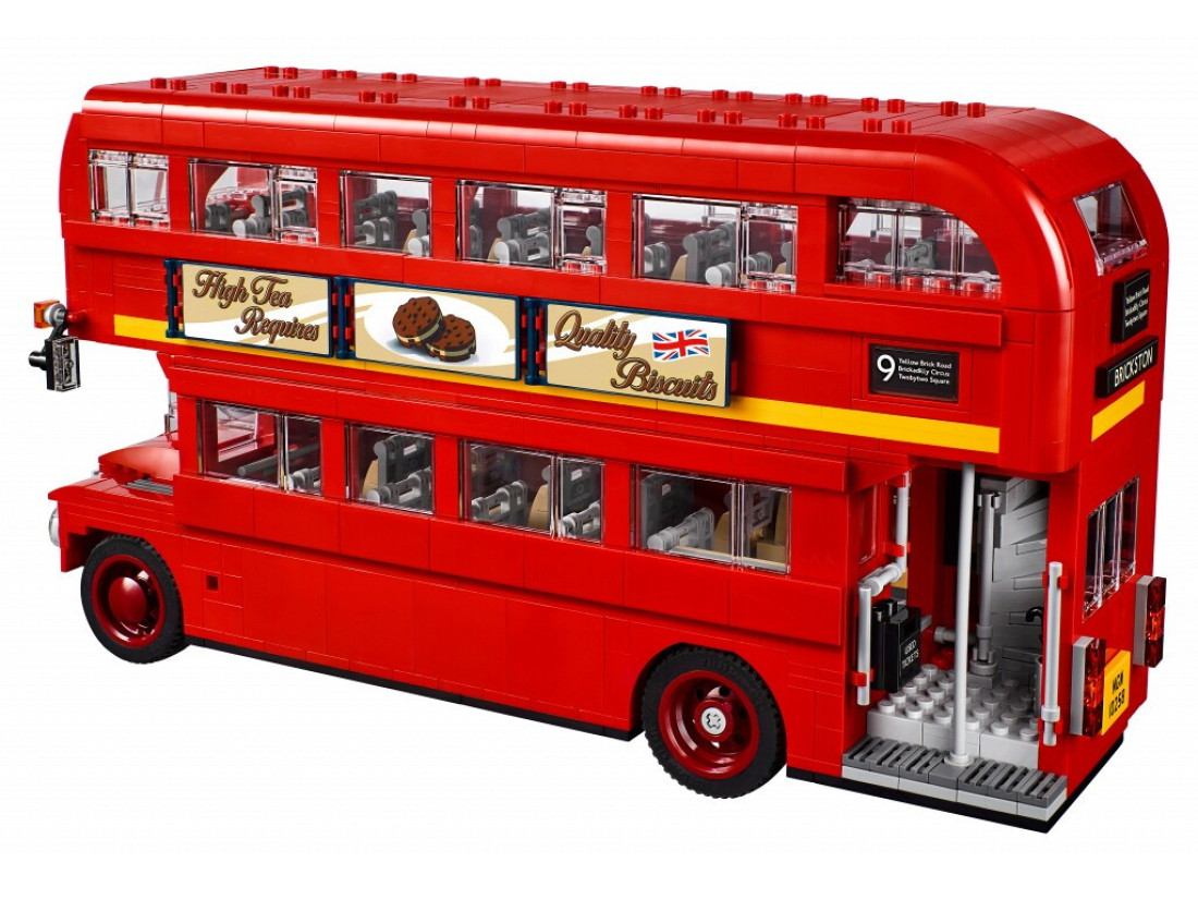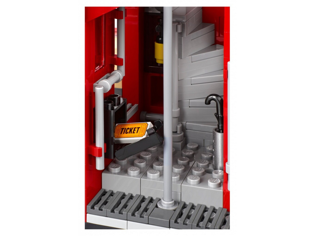В автобусі реалізовано функції для огляду внутрішньої конструкції: знімається дах і повністю верхній ярус, відкривається капот із мініатюрною моделлю двигуна. Всередині — ряди сидінь, сходи й кабіна водія; на бортах — маршрутні таблички та рекламні постери. Як тематичні аксесуари передбачені парасолька та газета. Набір містить 1686 деталей і рекомендований для вікової категорії 16+.