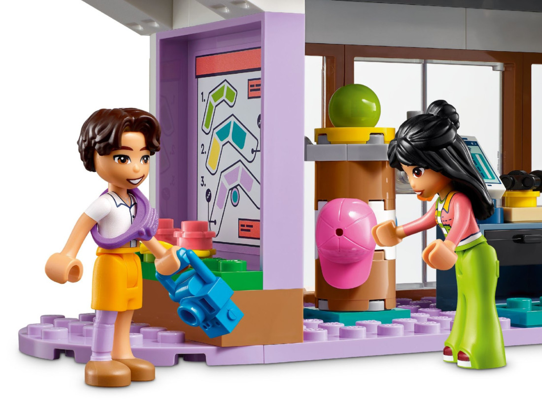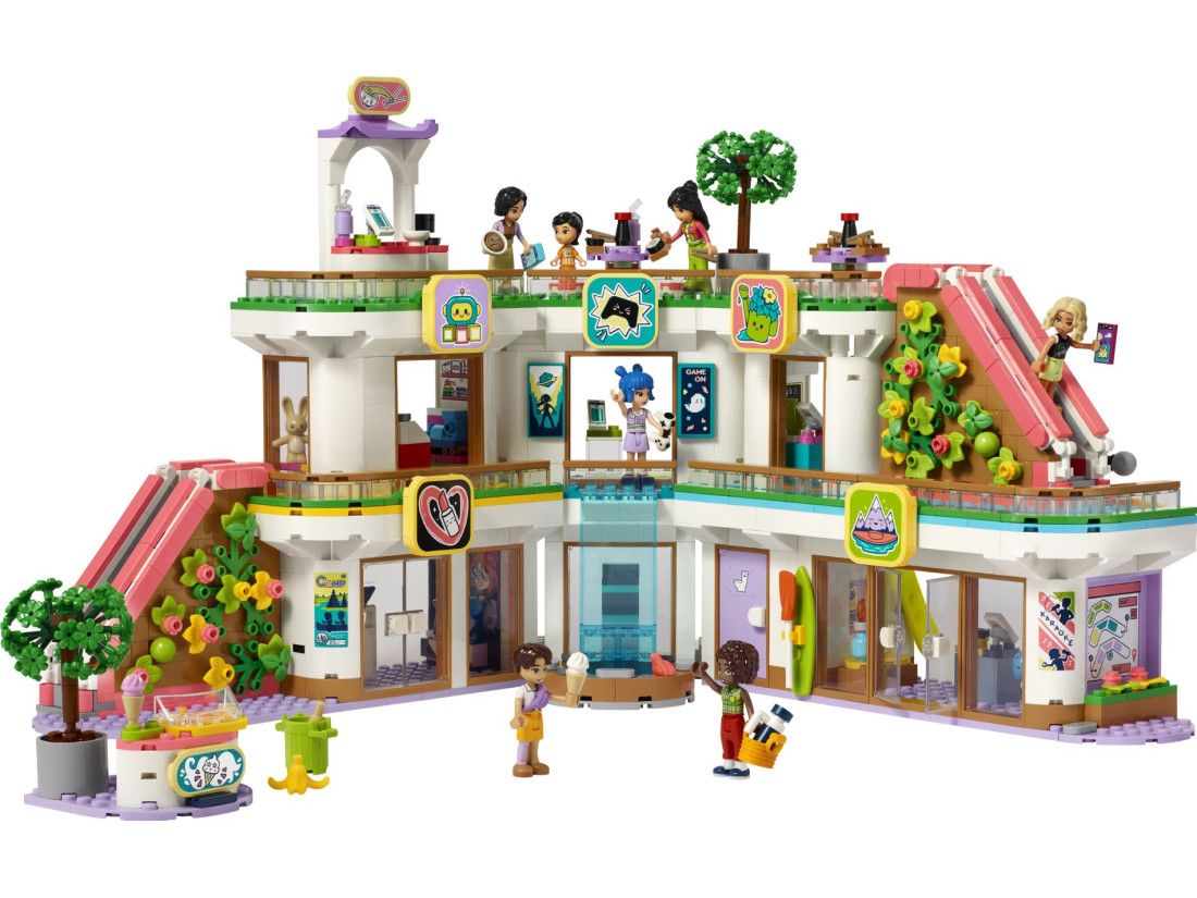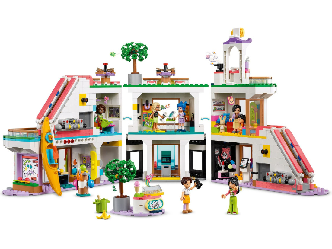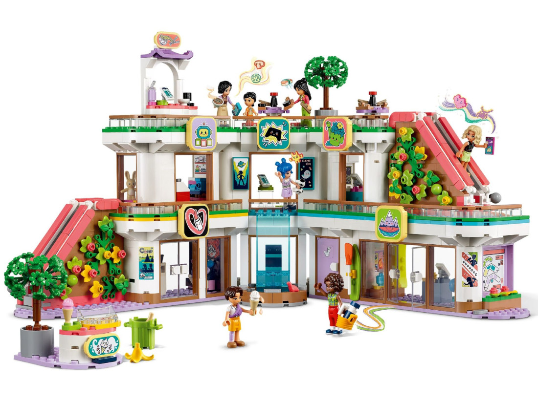 Цей набір з 1 237 деталей має розміри понад 25 см заввишки, 46 см завширшки та 21 см завглибшки. Це чудовий подарунок для дітей, які люблять пригоди в торговому центрі та рольові ігри на тему дружби. Використовуйте додаток LEGO® Builder, щоб провести дітей через інтуїтивно зрозумілий процес складання з можливістю обертання 3D-моделей та відстеження прогресу.