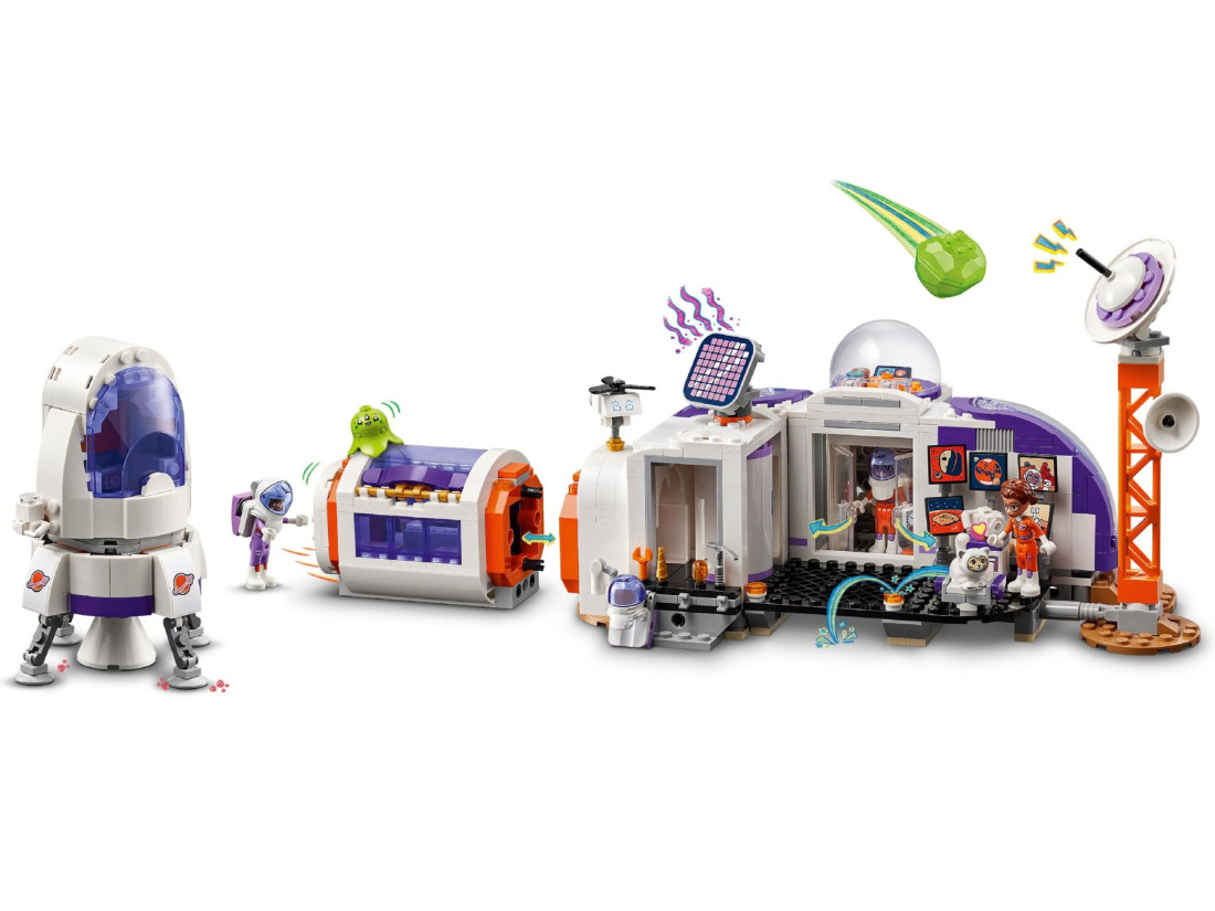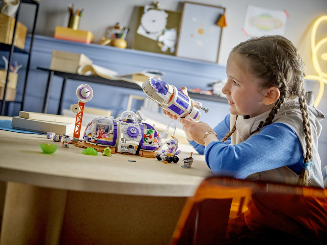 Діти можуть занурюватися в уявну гру, будуючи ракету та відправляючи її до дослідницької бази на Марсі. Модульний дизайн дозволяє нескінченно кастомізувати базу, оскільки окремі модулі для науки, зв'язку, вирощування їжі та відпочинку можуть бути переставлені. Набір наповнений цікавими деталями, такими як ровер, дрон та наукові інструменти, що дає можливість для рольових ігор та вивчення життя на червоній планеті.