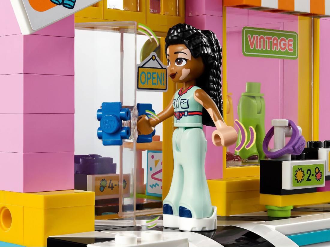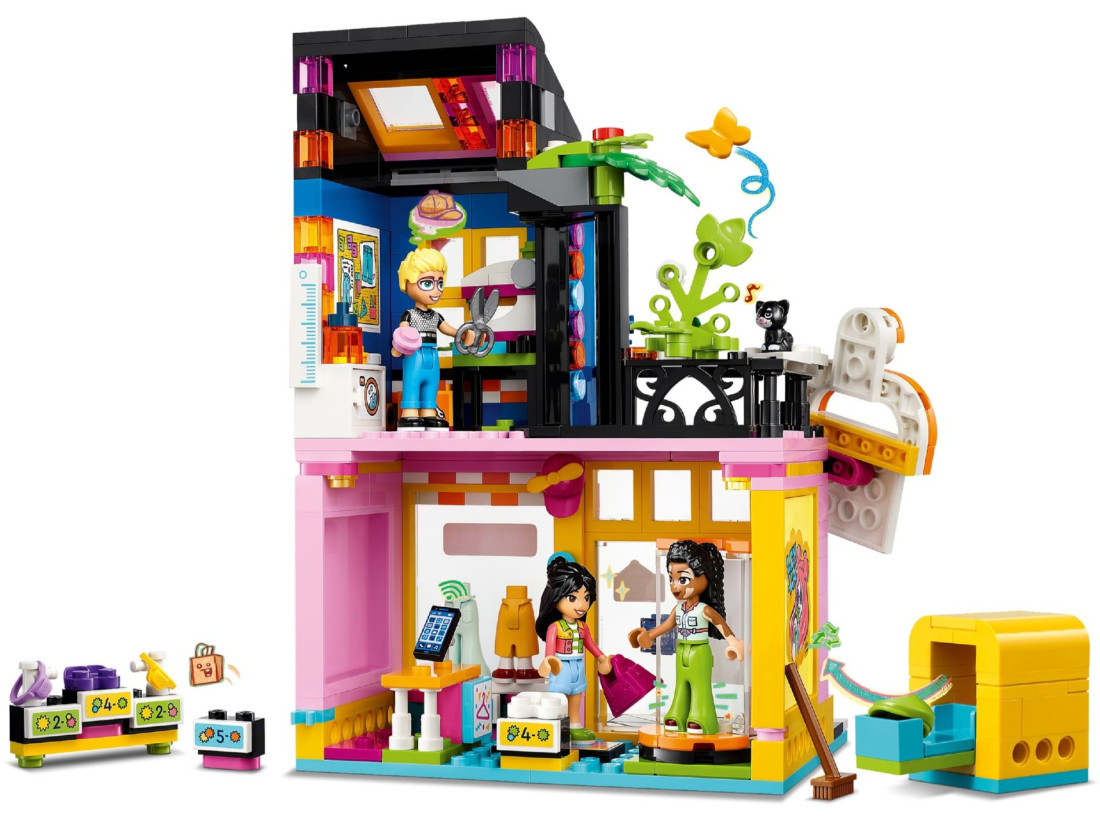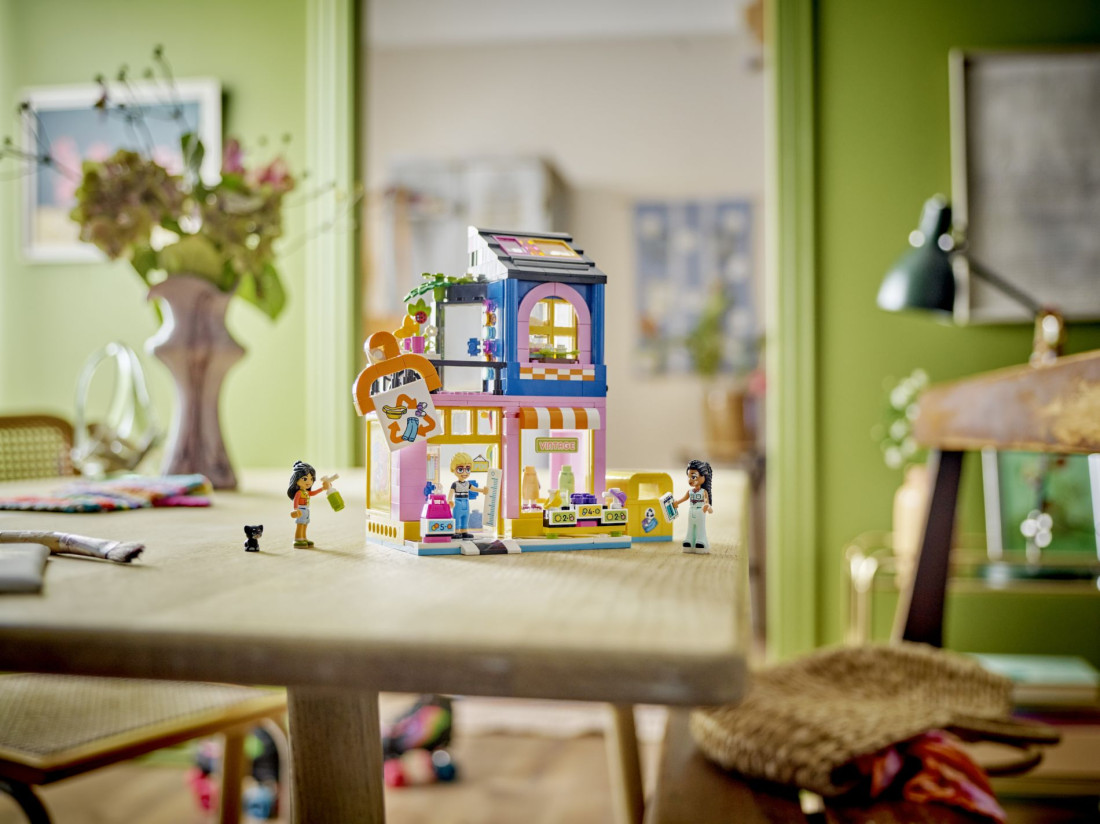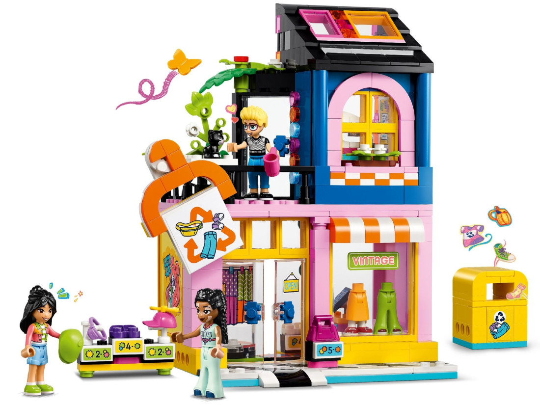 - LEGO® Friends "Вінтажний модний магазин" – Включає магазин, що будується з майстерні, 3 міні-ляльки, фігурку кішки та безліч модних аксесуарів для дітей від 6 років.