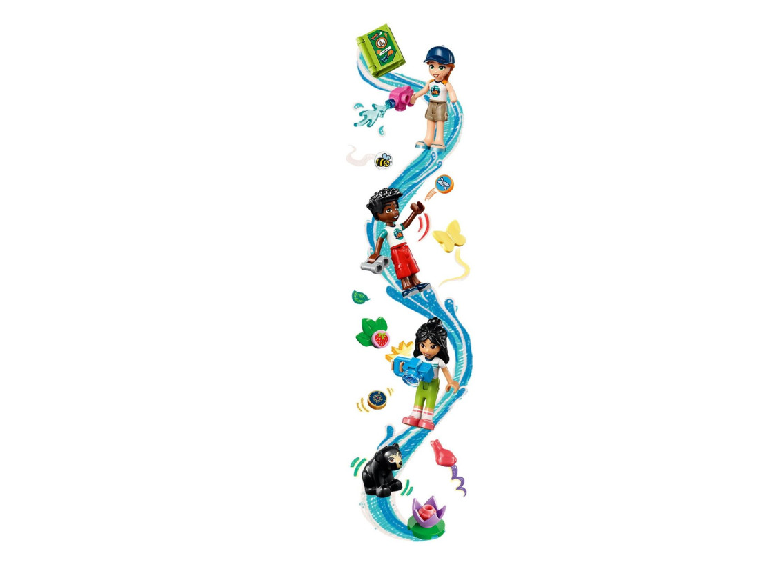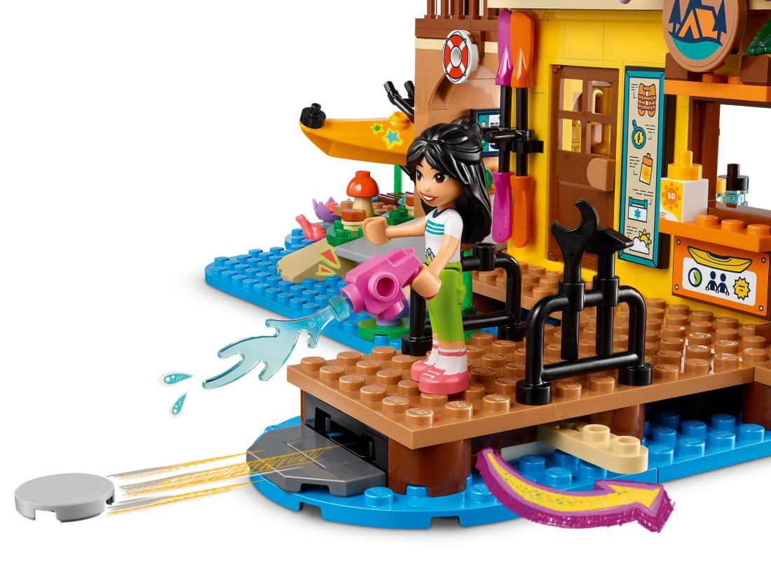У цей набір з 628 предметів входять міні-лялечки Отем, Ліан і Зак, фігурка ведмедя та різні аксесуари для водних видів спорту, такі як вудки, весла, шоломи, рятувальні жилети, ласти, сонцезахисний крем, стіл для настільного тенісу та каякінг значок для зошита табору. Цей набір висотою понад 22 см, шириною 34 см та глибиною 21 см надихає на годинник творчої розповіді та веселощів.