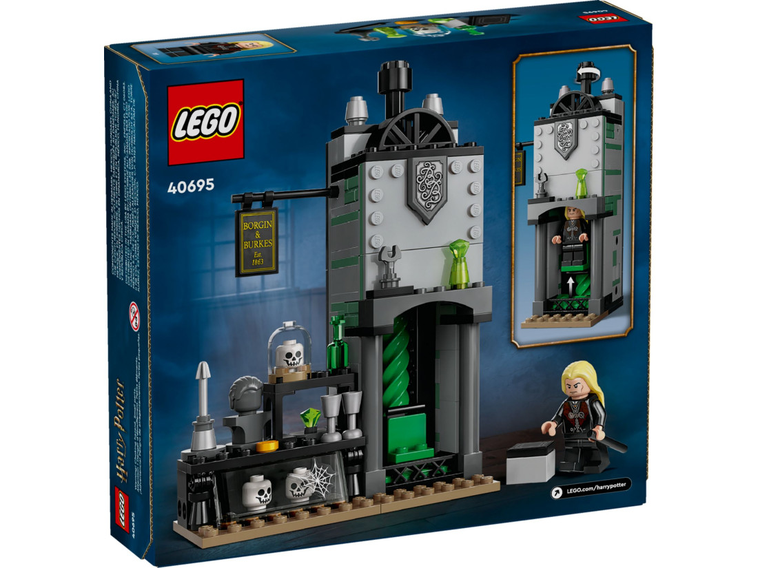 Пориньте в чарівний світ LEGO Harry Potter з набором Diagon Alley (40695), що включає Боргін і Беркс і Люціуса Малфоя. Цей захоплюючий ігровий набір, призначений для дітей віком від 8 років, дозволяє відтворити віддалену культову сцену з Гаррі Поттер і Таємна кімната™. У комплекті йде деталізована модель інтер'єру магазину Боргін і Беркс з каміном, оснащеним функцією Мережі Летучого Пороху - поверніть ручку, щоб Люціус Мелфой "зник", ніби він був перенесений в інше місце.