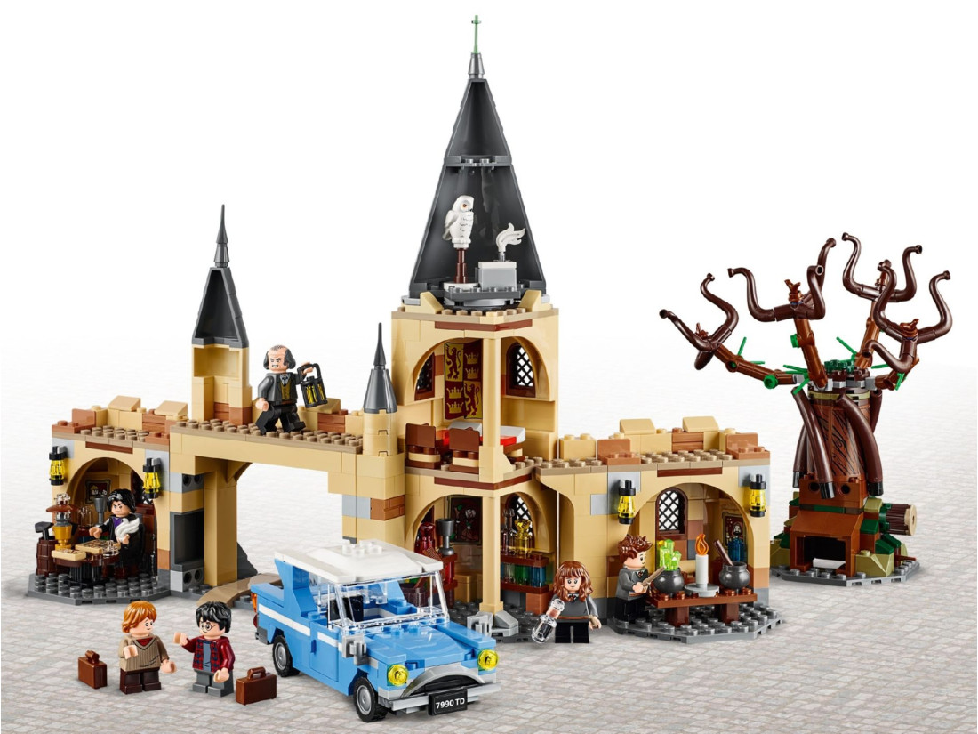 Набір LEGO HARRY POTTER 75953 «Верба-вовтузка Гоґвортсу» відтворює епізоди з чарівного світу й переносить до сцен прибуття до замку. У дерева обертаються гілки, а біля основи приховано вхід до підземного ходу. До набору входить літаючий «Форд Англія» з двома дверцятами, що відчиняються, і багажником для валіз. Серед персонажів — Гаррі Поттер, Рон Візлі, Герміона Ґрейнджер, Сімус Фініґан, Арґус Філч і Северус Снейп, а також фігурка сови Гедвіґ.