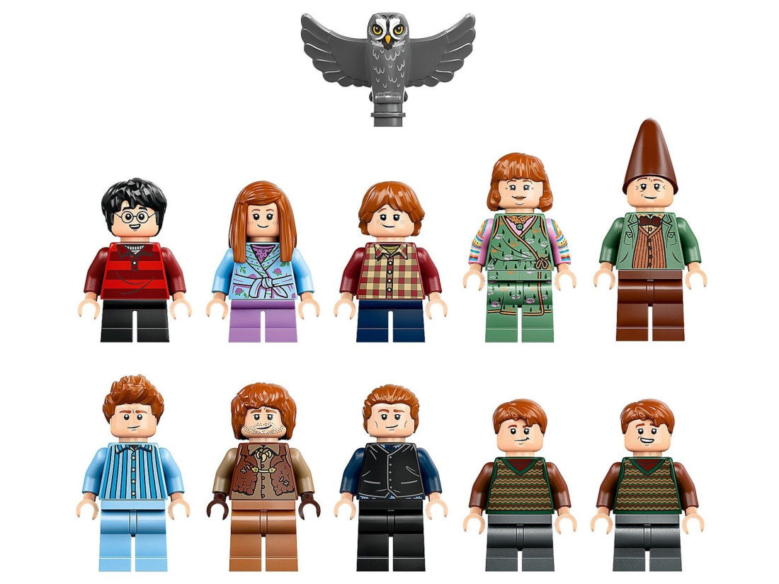 Включає 10 мініфігурок LEGO® – Персі, Чарлі, Білл, Моллі, Фред, Джордж, Артур, Джіні, Рон Візлі™ та Гаррі Поттер™, а також Еррол та дві свинки для більшого реалізму.