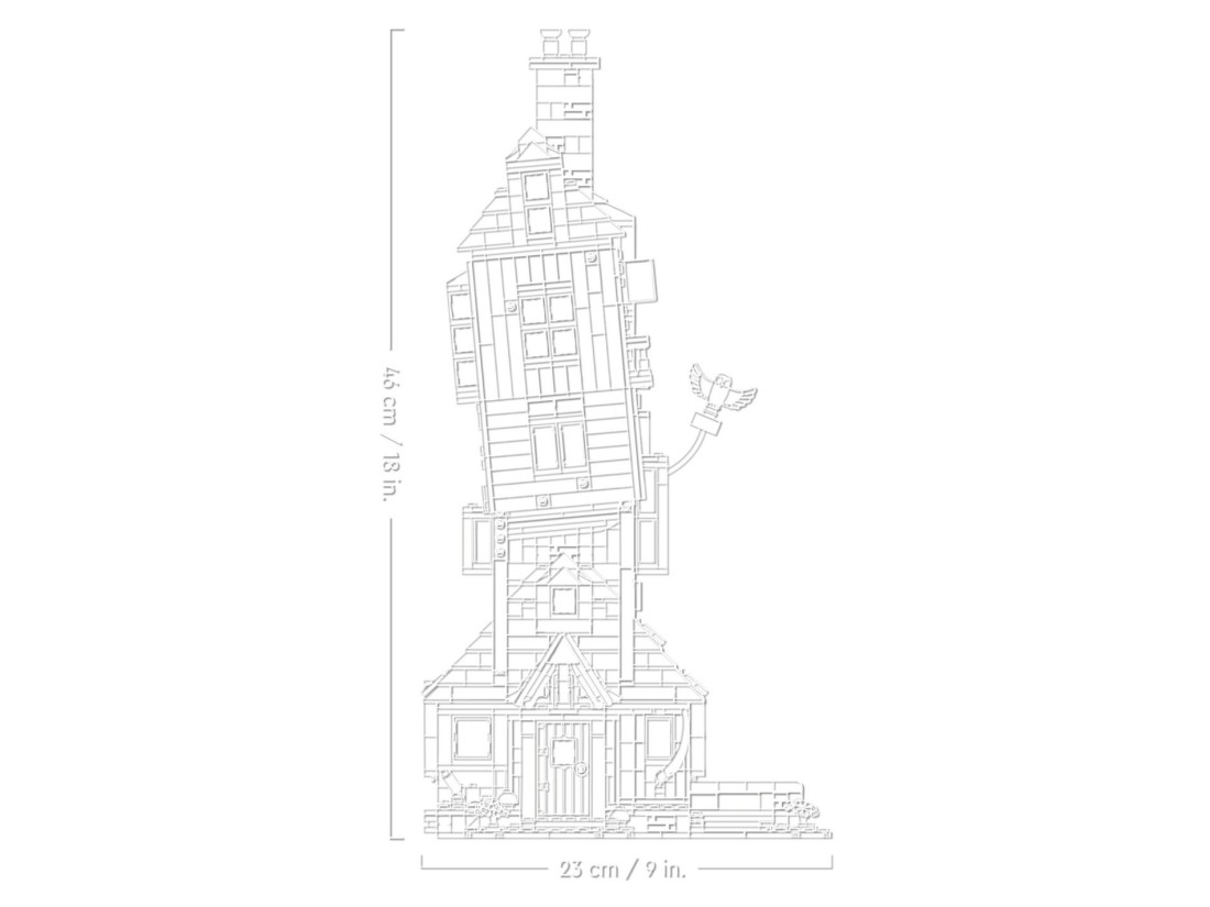 Деталізований будинок Візлі – Розумні техніки будівництва LEGO відтворюють хиткі, викривлені деталі Нори, включаючи хлів зовні.