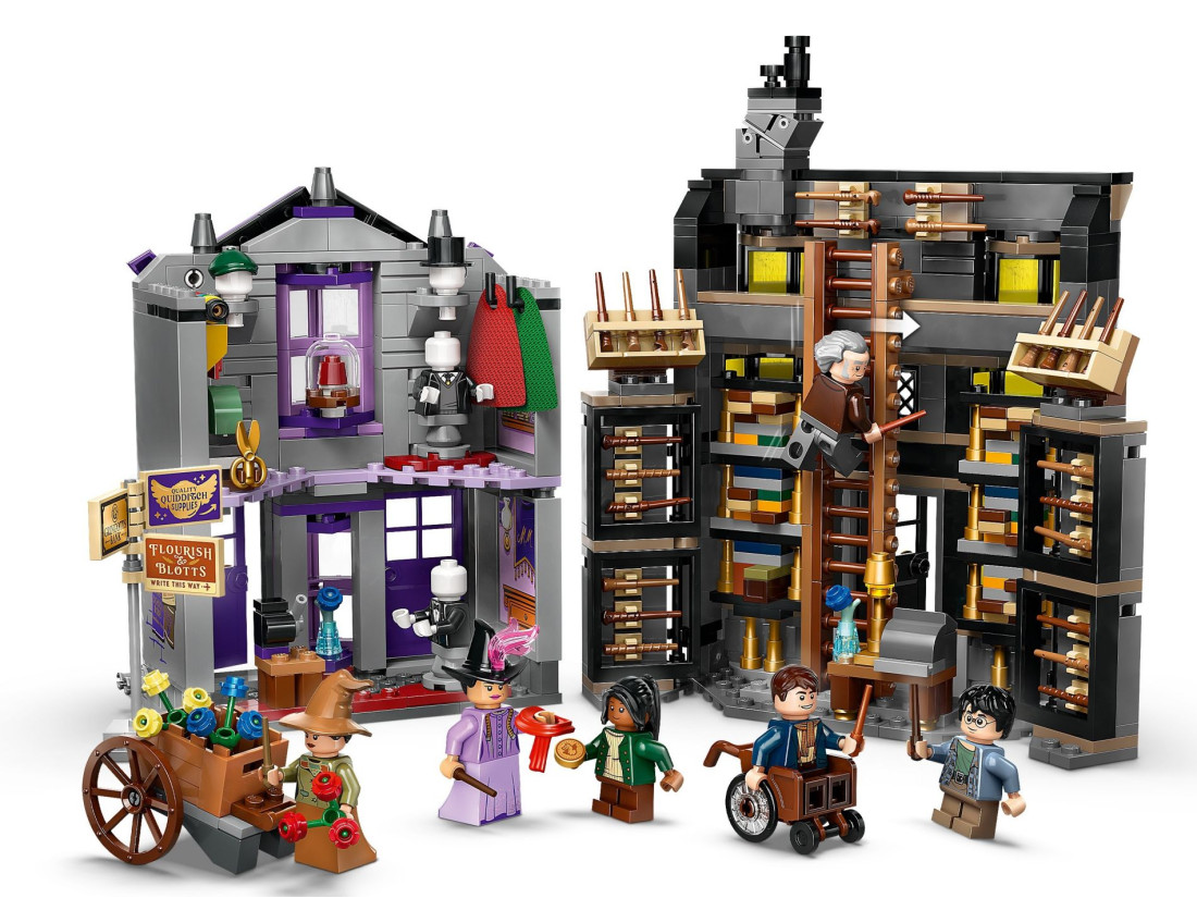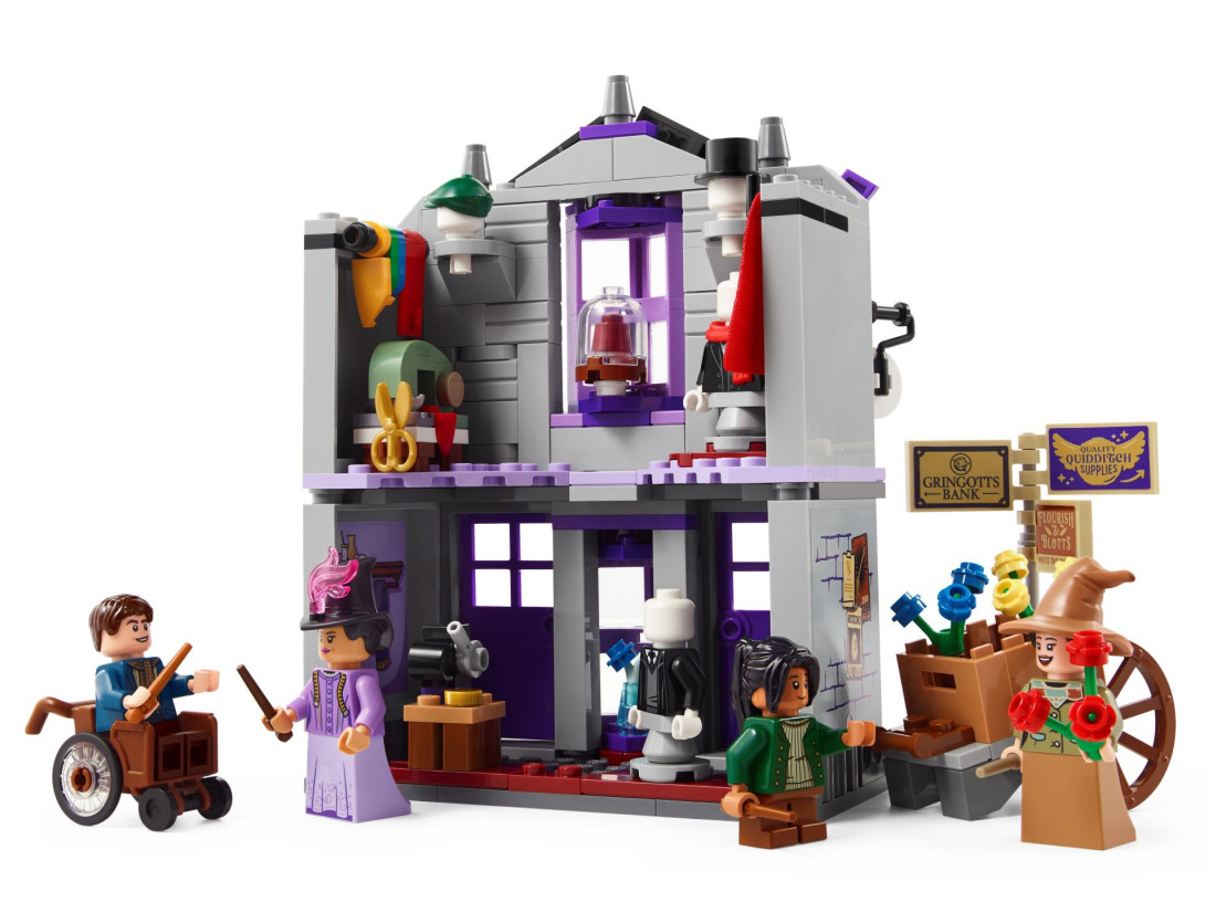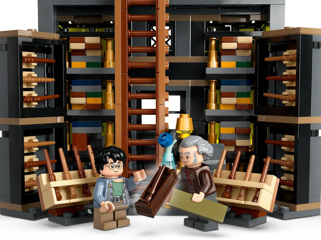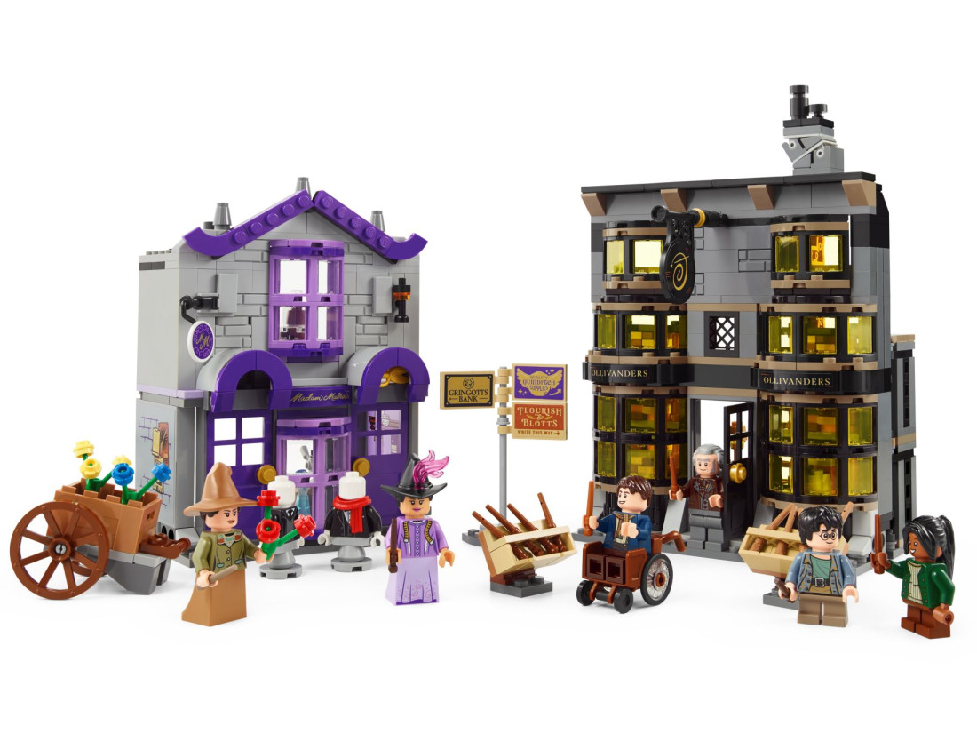 У набір входять 6 мініфігурок LEGO: Гаррі Поттер, Гаррік Олівандер™, мадам Малкін, Падма Патіл, студентка-чарівниця та відьма з квітковим курганом, що ідеально підходять для розігрування чарівних сцен. Два магазини можна з'єднати один з одним або з іншими наборами LEGO Harry Potter Diagon Alley (продаються окремо), що дозволить фанатам створити власну чарівну торгову вулицю.