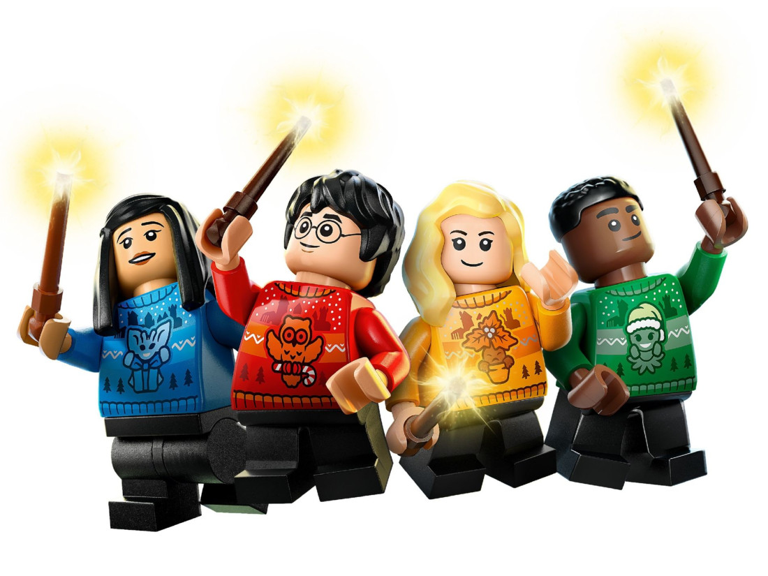 - 8 мініфігурок у святкових светрах: Гаррі Поттер, Драко Мелфой, Луна Лавґуд та ін.