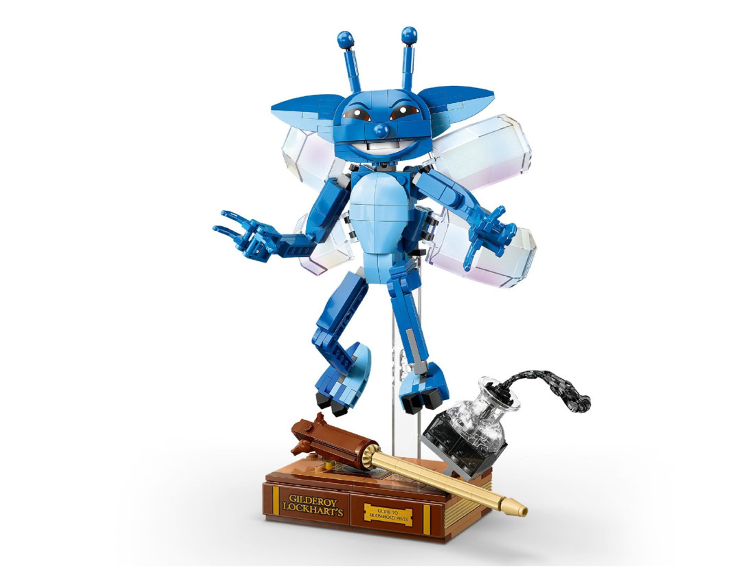 Голова, руки й пальці артикулюються; прозора стійка дозволяє встановити фігурку «в польоті» або зняти її для окремої пози. Для створення атмосфери є збірні аксесуари — книга Локгарта і чорнила, що розливаються. Набір із 320 деталей збирається у модель заввишки близько 24 см з підставкою.