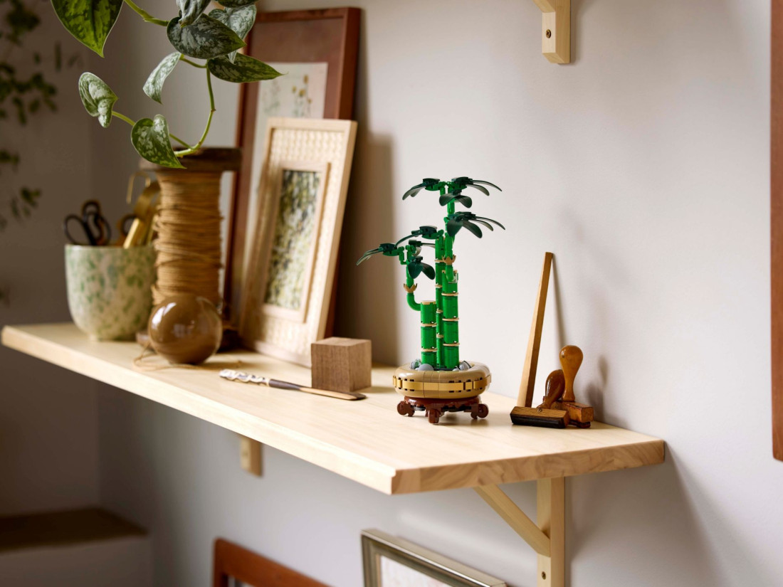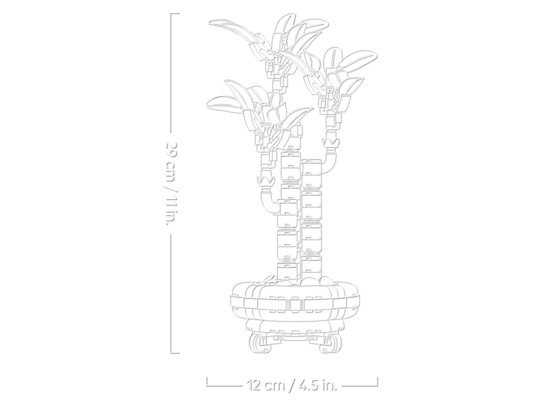 Збірна рослина включає 3 зелені стебла бамбука з реалістичним листям, камінці та квітковий горщик з дерев'яною підставкою. Після збирання воно стає вічним декоративним елементом, який прикрасить будь-який простір. Комбінуйте його з живими рослинами або іншими наборами з колекції LEGO Botanicals (продаються окремо) для створення більшої та ефектнішої квіткової композиції.